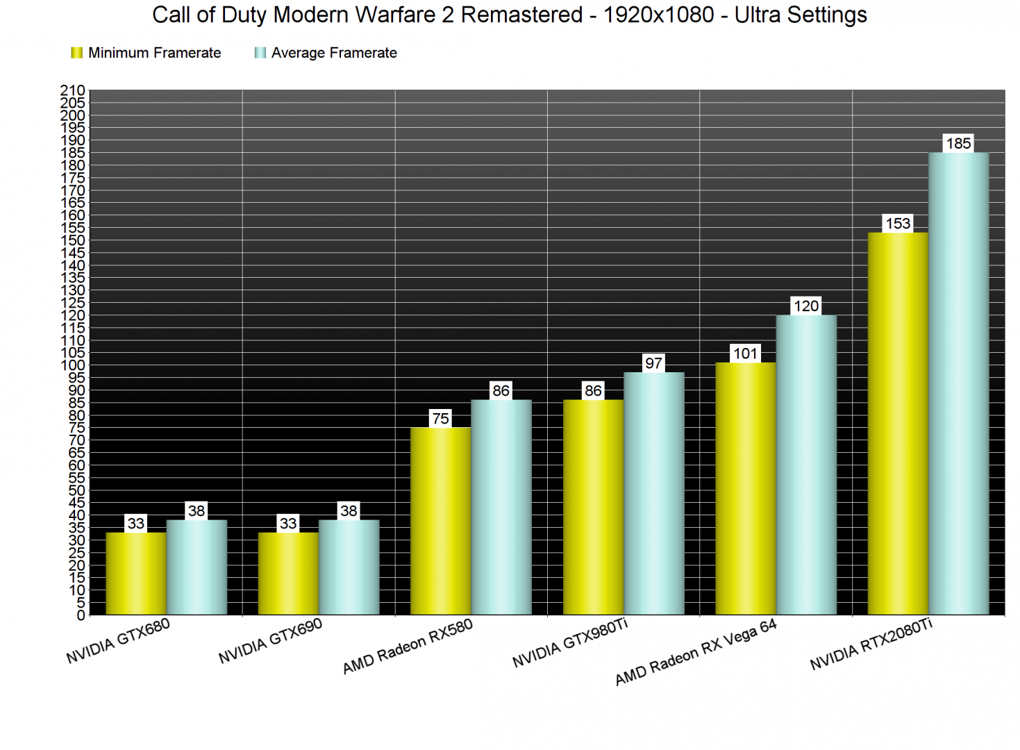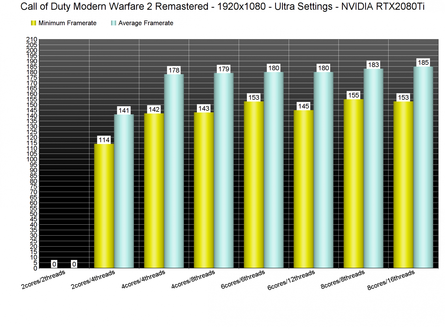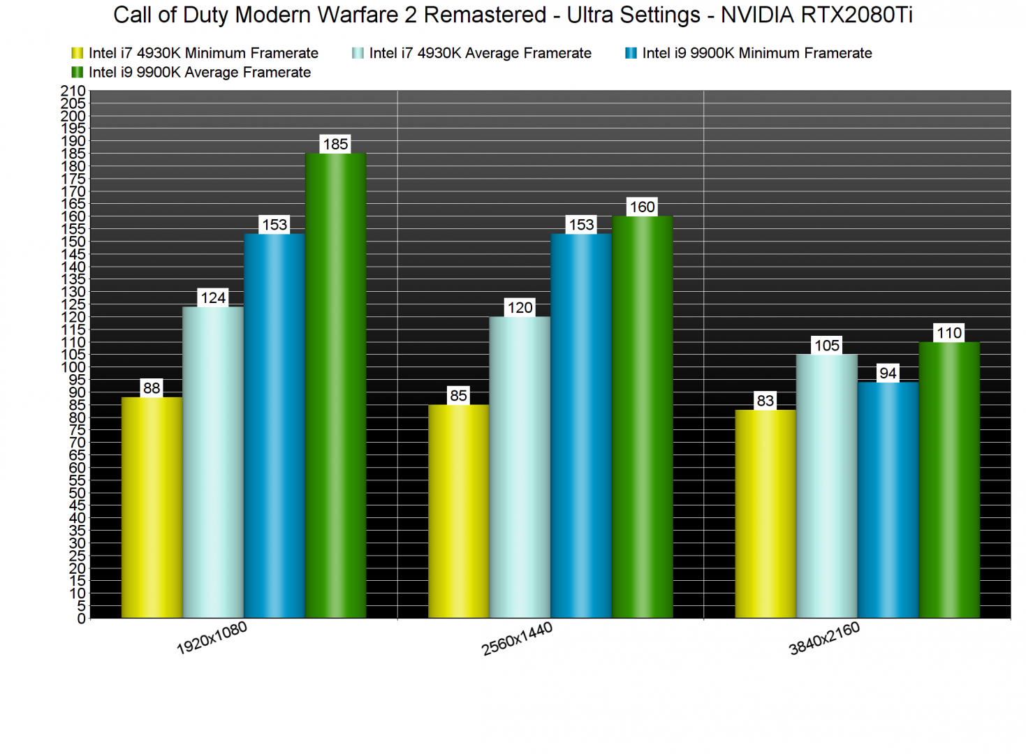 Call of Duty Modern Warfare 2 Remastered uses the DirectX 11 API and runs significantly better on newer CPUs. While our Intel i7 4930K was able to push a constant 60fps experience at 1080p/Ultra settings, it was noticeably slower than our Intel i9 9900K.