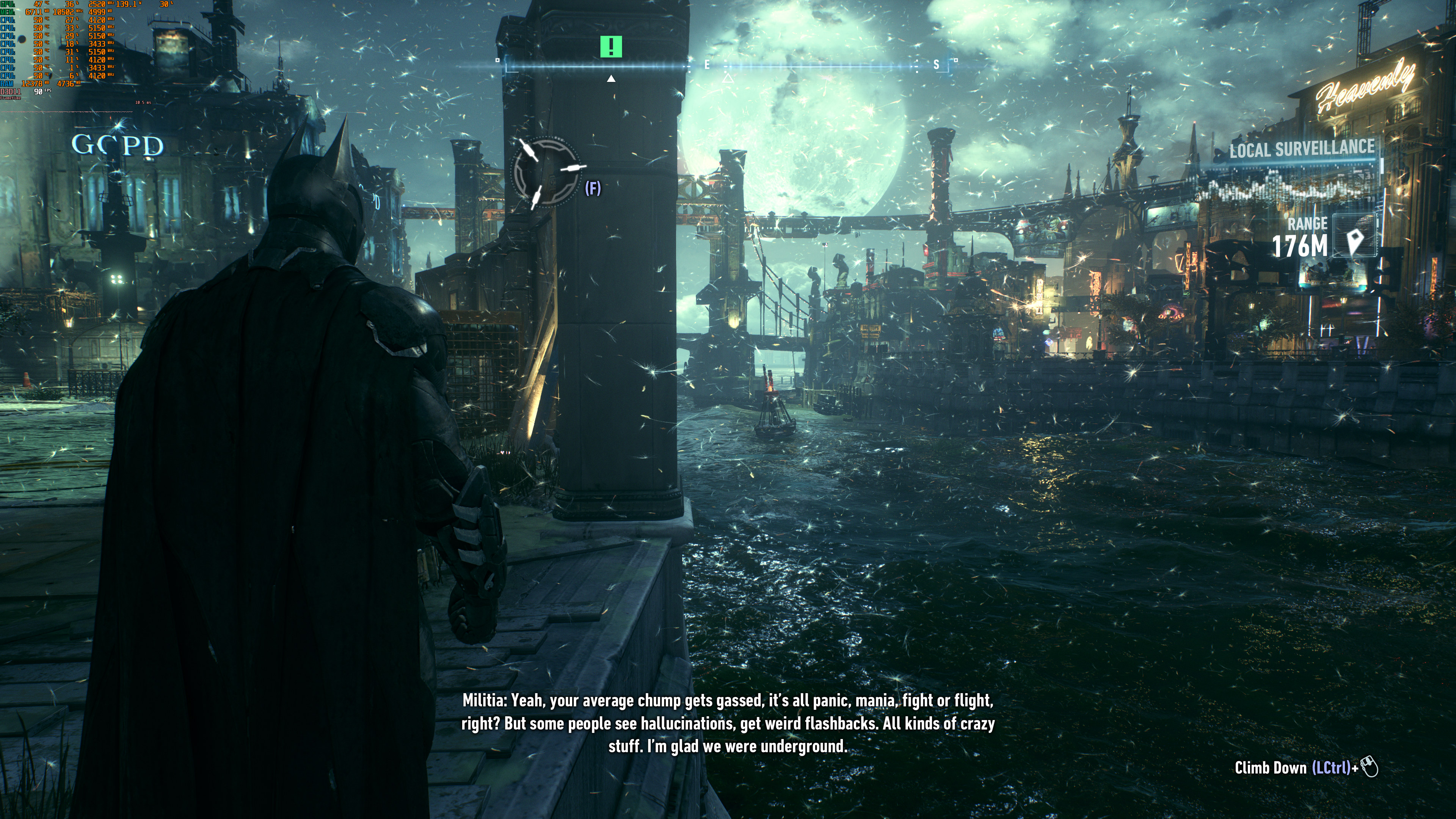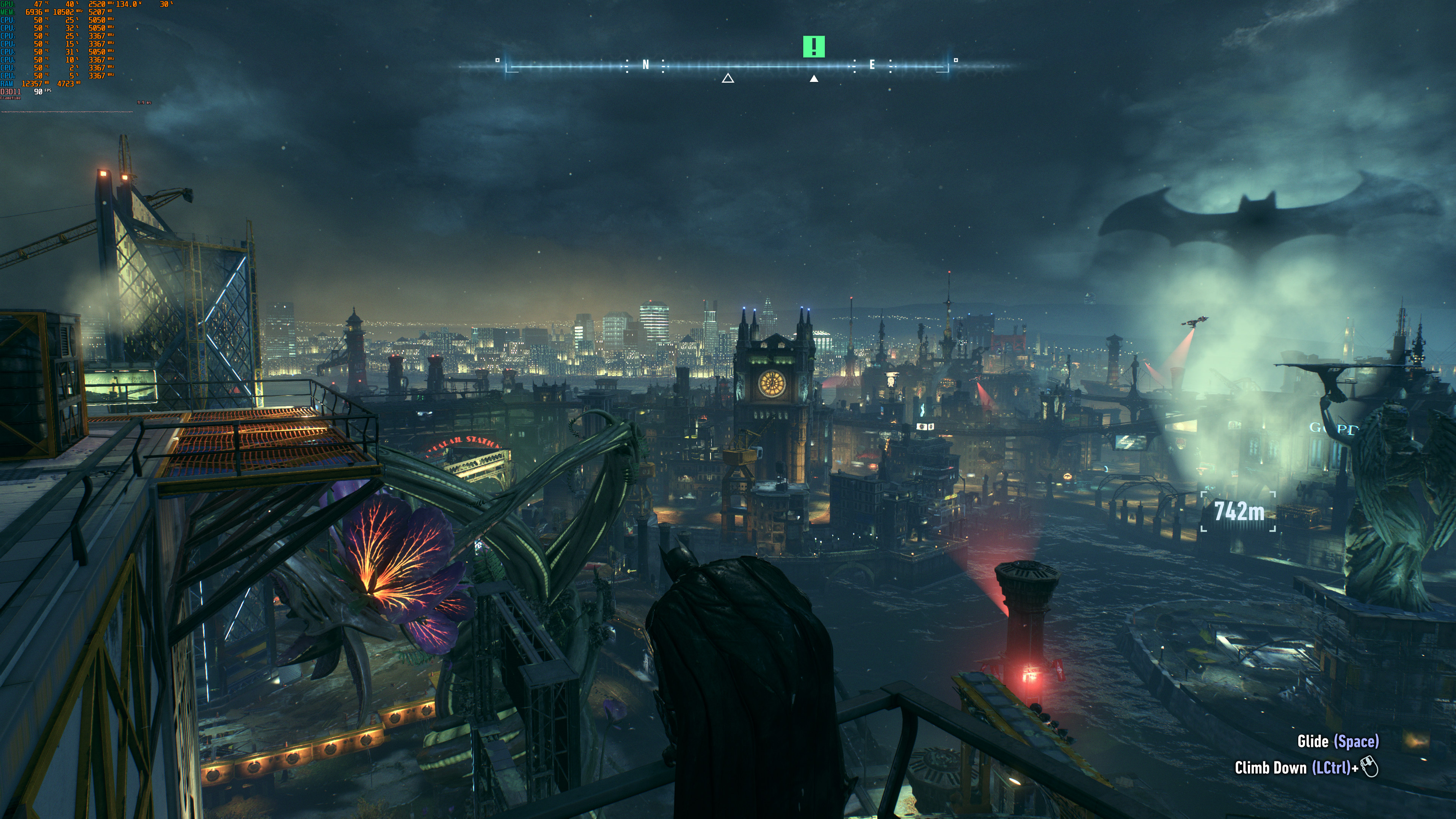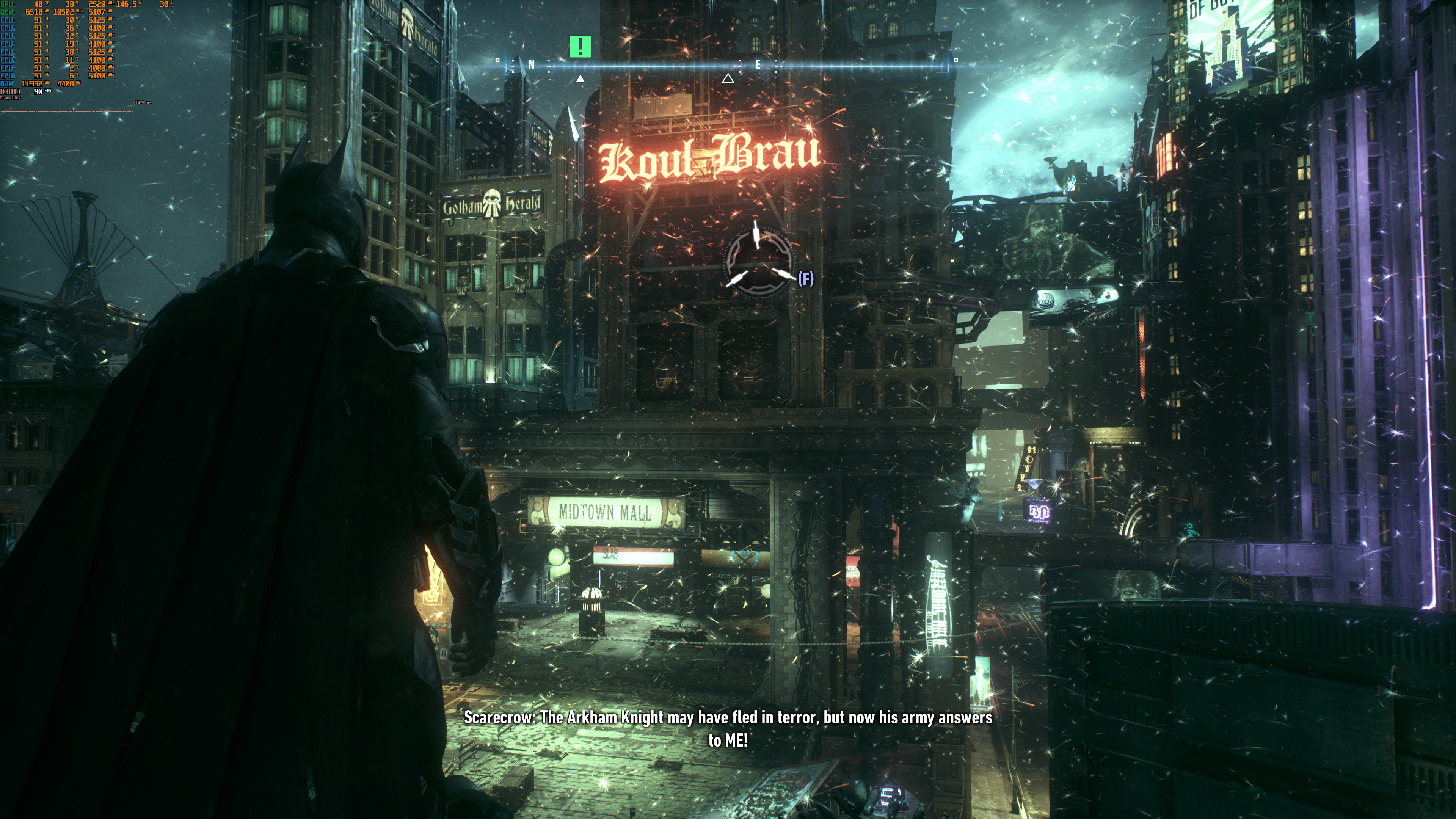 The reason I’m saying that Arkham Knight runs better than Arkham City and Arkham Asylum is due to the fewer stutters. Since I’ve played all of them, I can say that Arkham City and Arkham Asylum have more intrusive traversal stutters. On the other hand, Arkham Knight feels smoother, even when causing havoc and chaos in the streets.