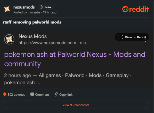 Nexusmods has banned all mods related to Pokémon to Palworld game