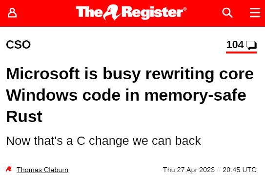 They will rewrite large parts of the Windows kernel in Rust instead of C/C++. Microsoft said that 70% of kernel problems can be attributed to the use of C++ that involve memory management. Rust is much safer than C++ when it comes to allocating and releasing memory.
