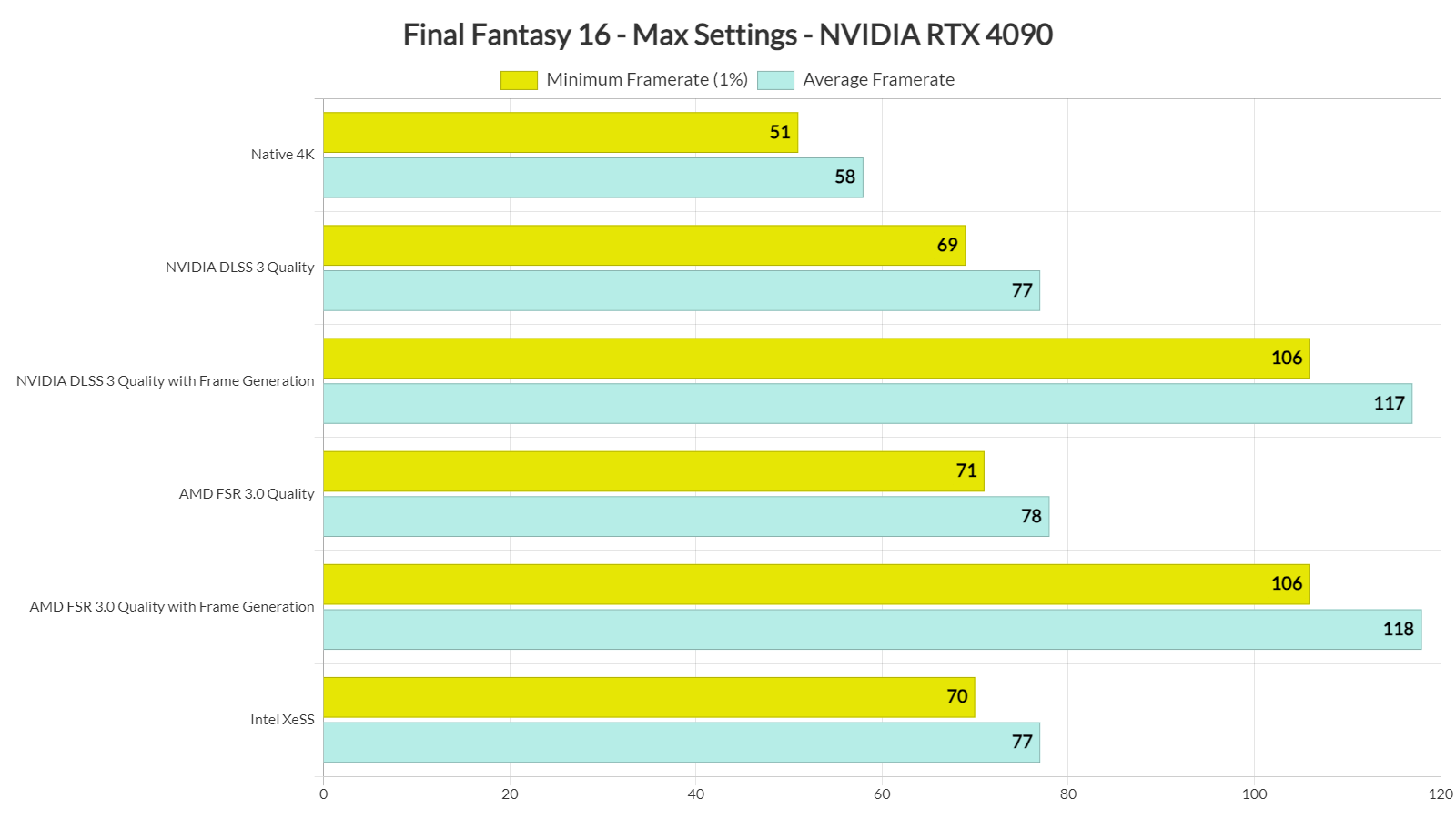 In my opinion, the best way to play FF XVI on an NVIDIA RTX 4090 is with DLAA and DLSS 3 Frame Generation. With this combo, you’ll get framerates higher than 80fps at all times. And, thanks to DLAA, you’ll get a great image.