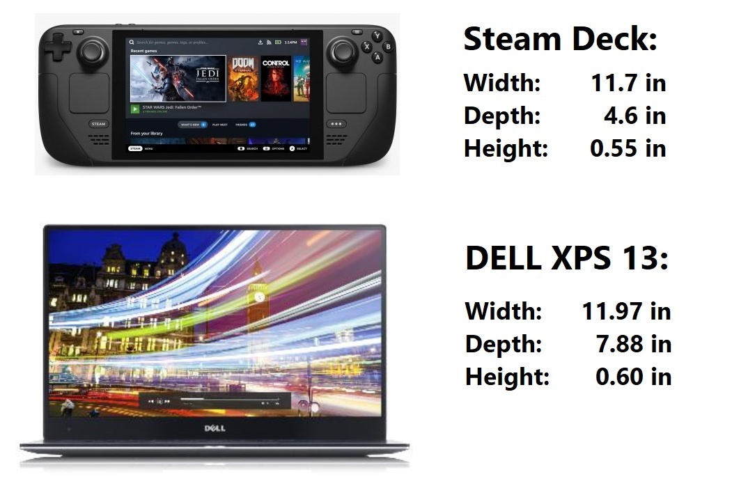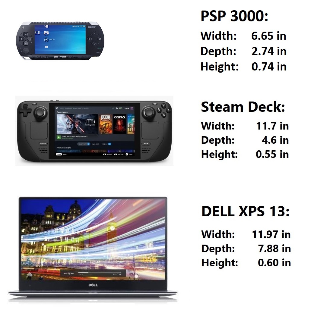 This is just size comparison. Steam Deck 4x larger than PSP and weight 3x more than console from Sony. Steam Deck is size of 13″ notebook