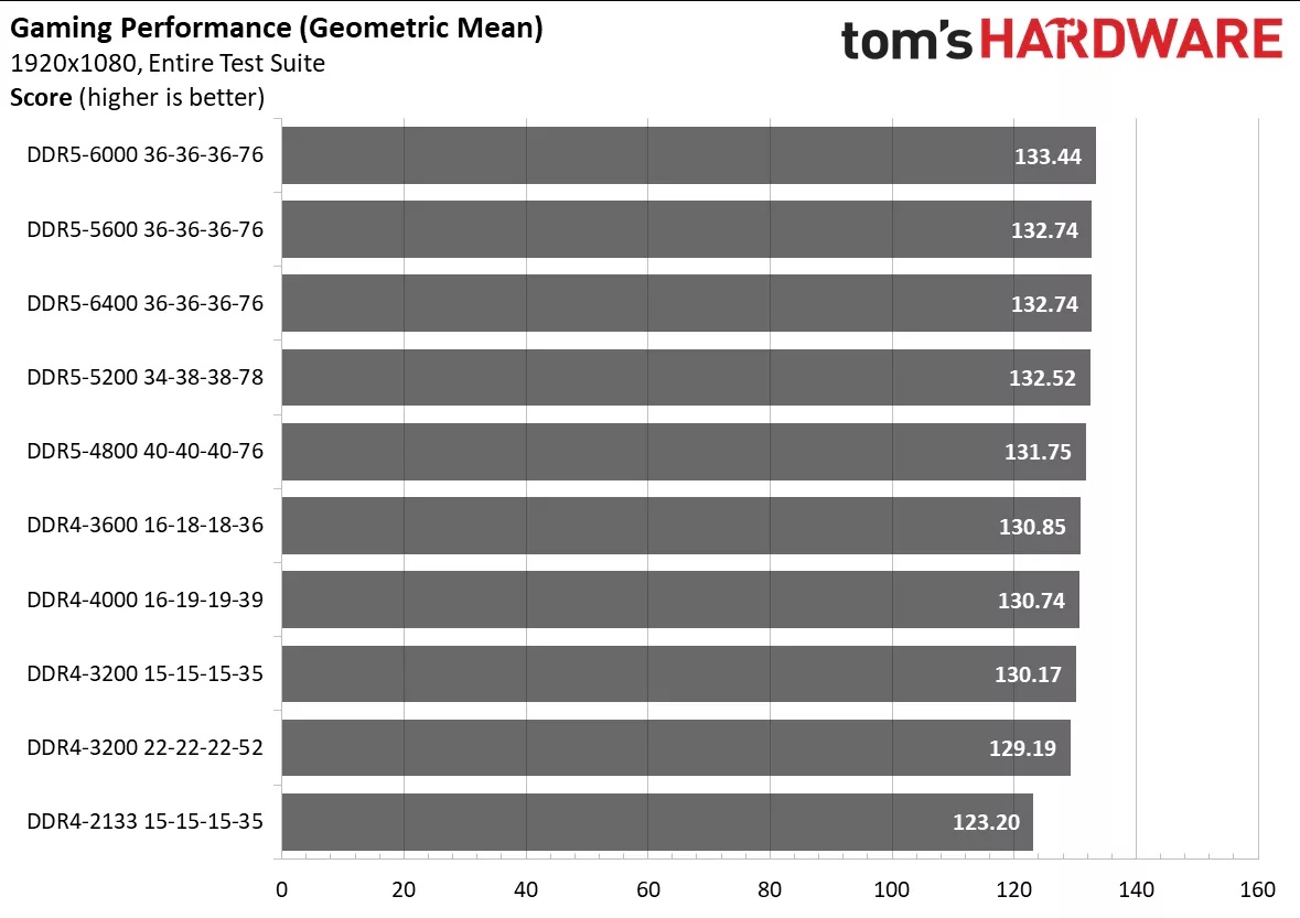And DDR5 overall doesn’t add much performance over DDR4. For example, the fastest Corsair Vengeance DDR5 kit for $200, 2×16 6000MHz gives you <10% performance gain (at 1080p, on higher res diff. is even smaller) than the slowest Corsair Vengeance DDR4 2×16 DDR4 2133 which is worth $80.