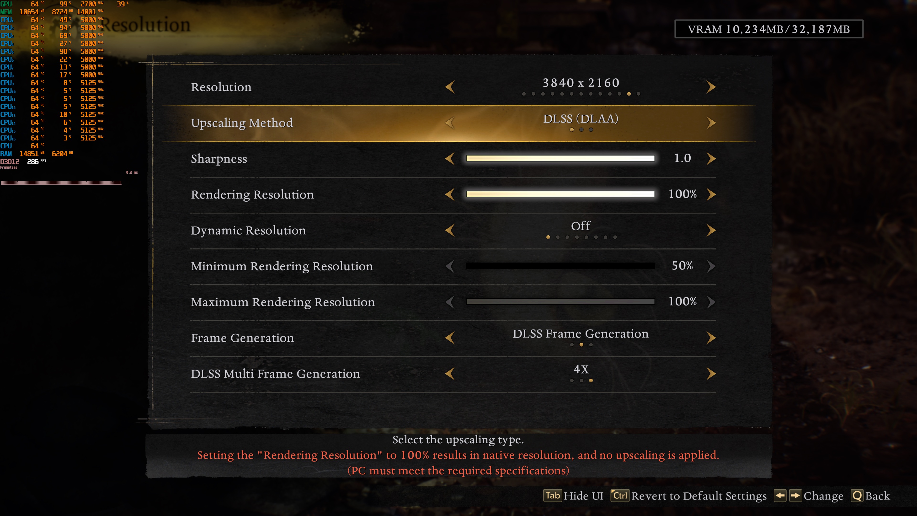 Nioh 3 has a respectable number of graphics settings to tweak. PC gamers can adjust the quality of Shadows, Textures, Effects, Terrain, and more. The game also supports DLSS 4, AMD FSR 3.0, and Intel XeSS 2.0. However, there is no support for TAA. As such, to get a Native image, you’ll have to use one of the aforementioned upscalers. I’m mentioning this because DLAA is always more demanding than Native 4K with TAA. Moreover, the game supports DLSS 4 Multi-Frame Gen. Without MFG, the maximum framerate limit is 120FPS. With MFG, you can get to 480FPS.