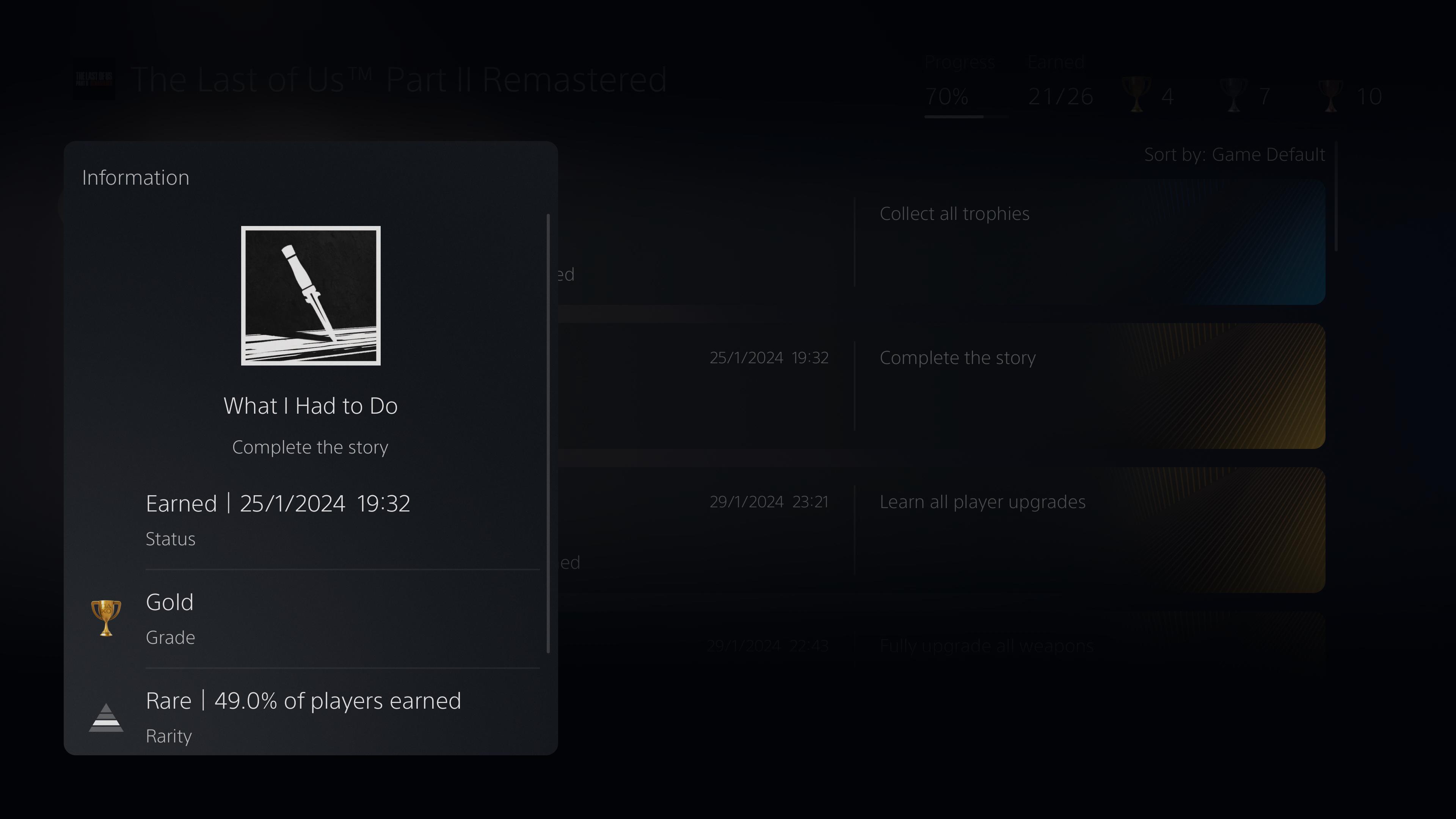 Sony has a trophy system,that is based on purchase/play ratio. https://uploads.disquscdn.com/images/18fb51e04cd80937ae7bea53e048d9102813d3492b9e65db2c009924e44abea7.jpg https://uploads.disquscdn.com/images/e5d6201d4e6e1f42672e4e917932229a4b553f732959b12928b13b1602710c2e.jpg https://uploads.disquscdn.com/images/448fde7891723d535868e3763f00cae3d61c09dfa893183af051f7347257a8e6.jpg So,people thrashed TLOU2 when it came out and praised Ghost Of Tsushima(that was the topic in gaming back then).