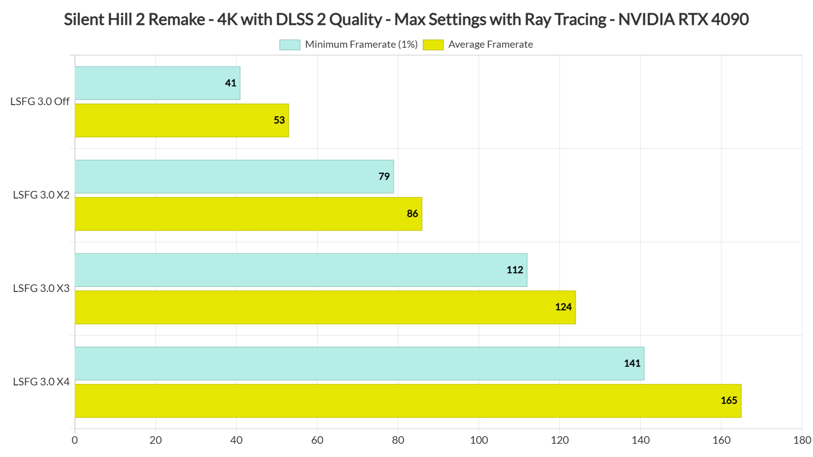 Then we have Silent Hill 2. Silent Hill 2 suffered from both visual artifacts and frame pacing issues. This is something that really surprised me. In almost all the games I tested, LSFG 3.0 X4 introduces noticeable frame pacing/stuttering issues. In SH2 Remake they are quite noticeable, and completely eliminate the whole purpose of LSFG (which is to get a smoother camera movement). And again, DLSS 3 FG is superior to LSFG 3.0.