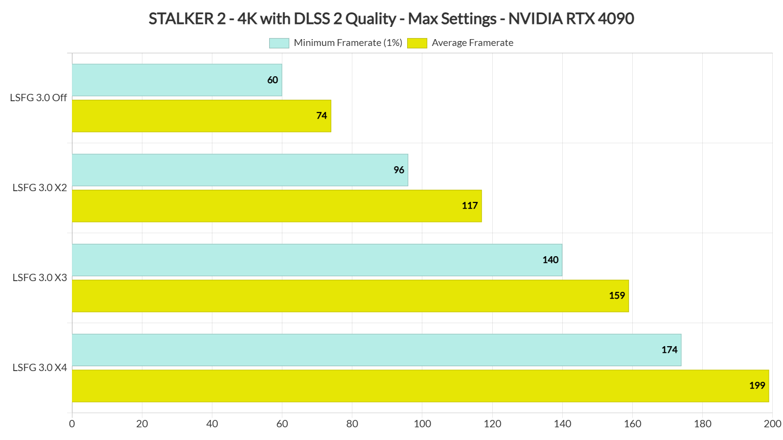 As for STALKER 2, it suffers from both visual artifacts and frame pacing issues. See a pattern here? Yep, all of the games we’ve tested had worse frametimes when using LSFG 3.0 X4. That’s a bummer as those frame pacing issues prevent you from taking advantage of LSFG 3.0 X3 or X4. Now contrary to the other titles, STALKER 2 was playable with LSFG 3.0 X4, despite the aforementioned issues.