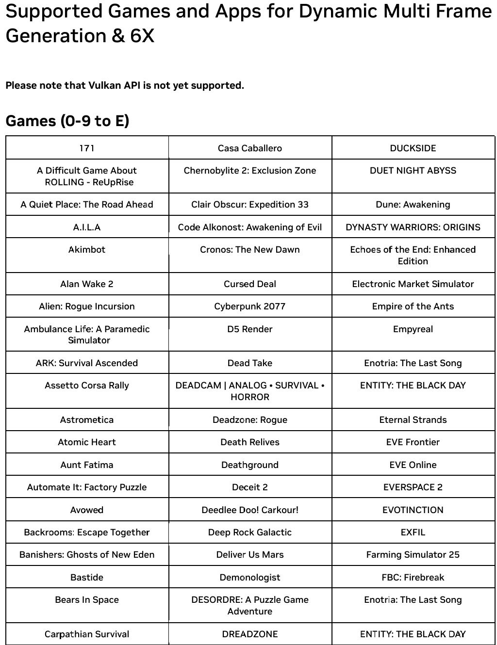 - Borderlands 4 – No artifacts. Great performance and “game feel” with DLSS Quality Mode. Dynamic Frame Gen works great.