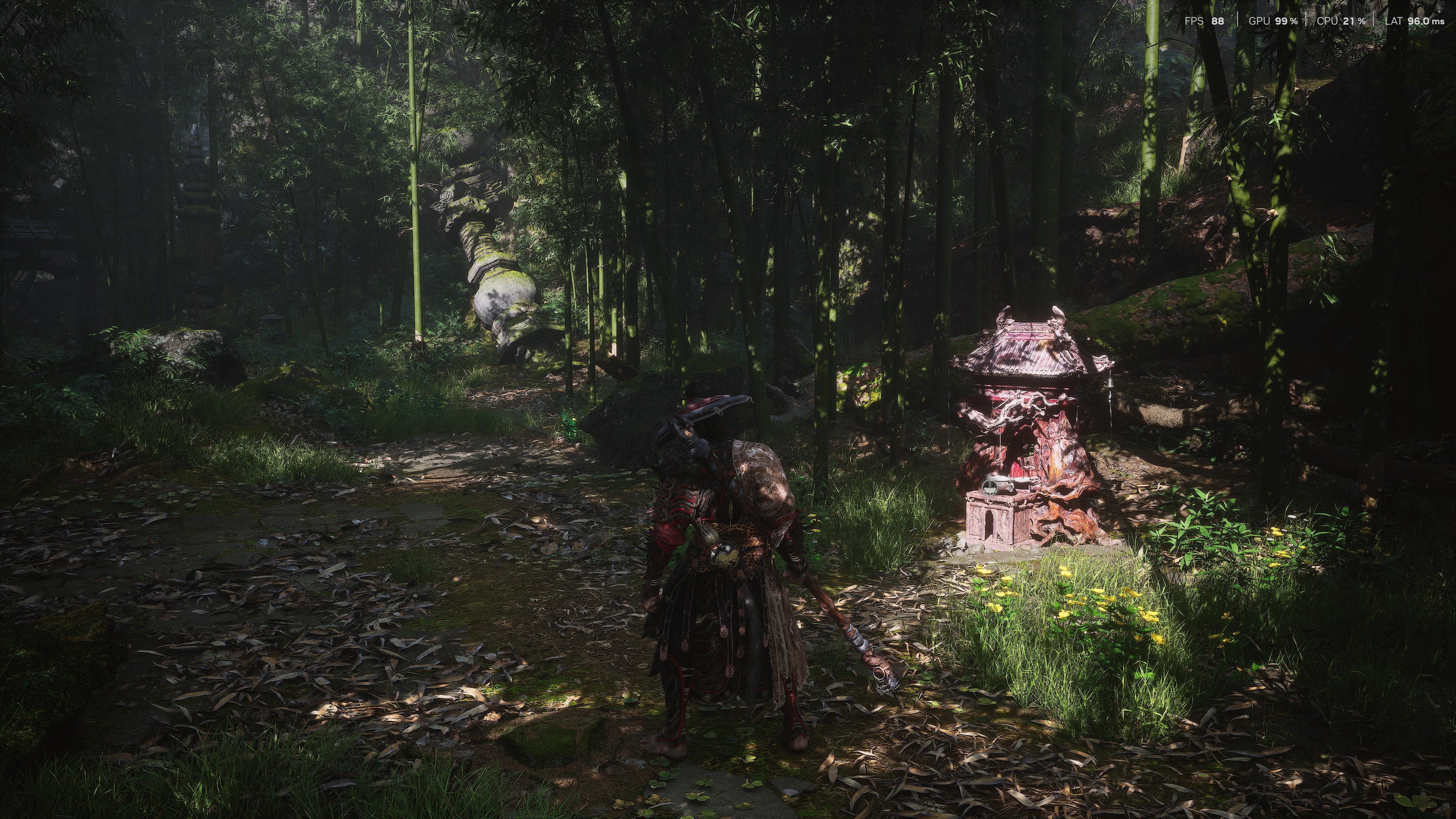 So, here are some screenshots from Black Myth Wukong. The first one is at 4K/Path Tracing with only DLSS 3 Quality Mode, the second is with Smooth Motion and the third is with DLSS 3 FG. Surprisingly enough, DLSS 3 Quality Mode with FG manages to offer lower latency than 4K with only DLSS 3 Quality Mode. As for Smooth Motion, it feels slightly worse than 4K with DLSS 3 SR. Yes, you get an extra 10ms input lag, but most of you won’t even notice it. What you will notice, however, is the smoother camera movement.