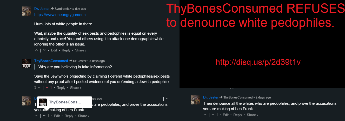 “Anyone who reads this and still gives money to Take Jew deserves to be put into *real* Gas Chambers and Mastrbatin Machines and Holocoaster rides.”