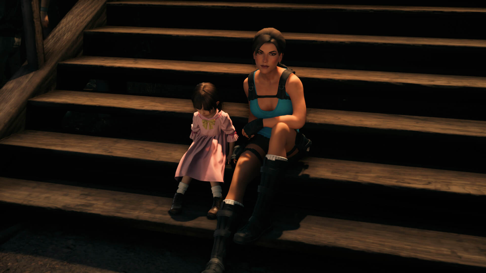 Ironically, Lara’s 3D model from Lara Croft: Temple of Osiris feels quite good in FF7R. To be honest, I’m really surprised by the results. It also makes more sense to use this model and not the one used in the main Tomb Raider trilogy. After all, this model has a more “animated” look.