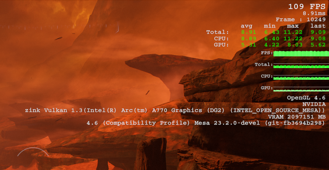 Yeah, but we’re talking about Arc drivers and OpenGL Arc drivers at that. It’s not that Zink is necessarily amazing here, it’s that OpenGL on Arc is very poor.