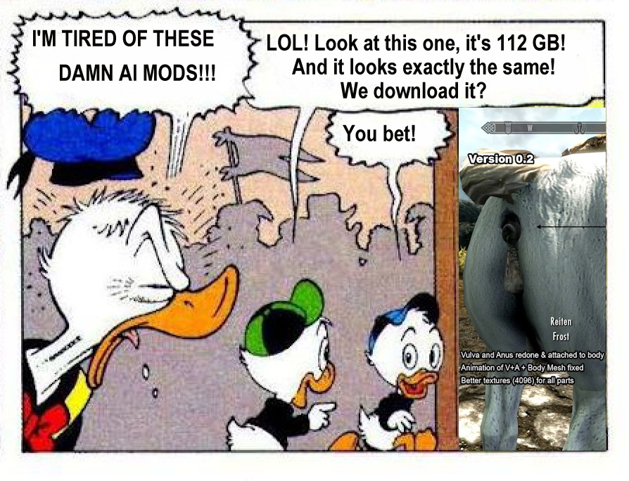 People think they need to do things with AI since it's there. No, you don't. Just leave it be. 100 gigs and how much energy waste for a squint and maybe see a tiny difference. Pick a useful mod next time instead of spinning CPU cycles into oblivion, yes intended.
