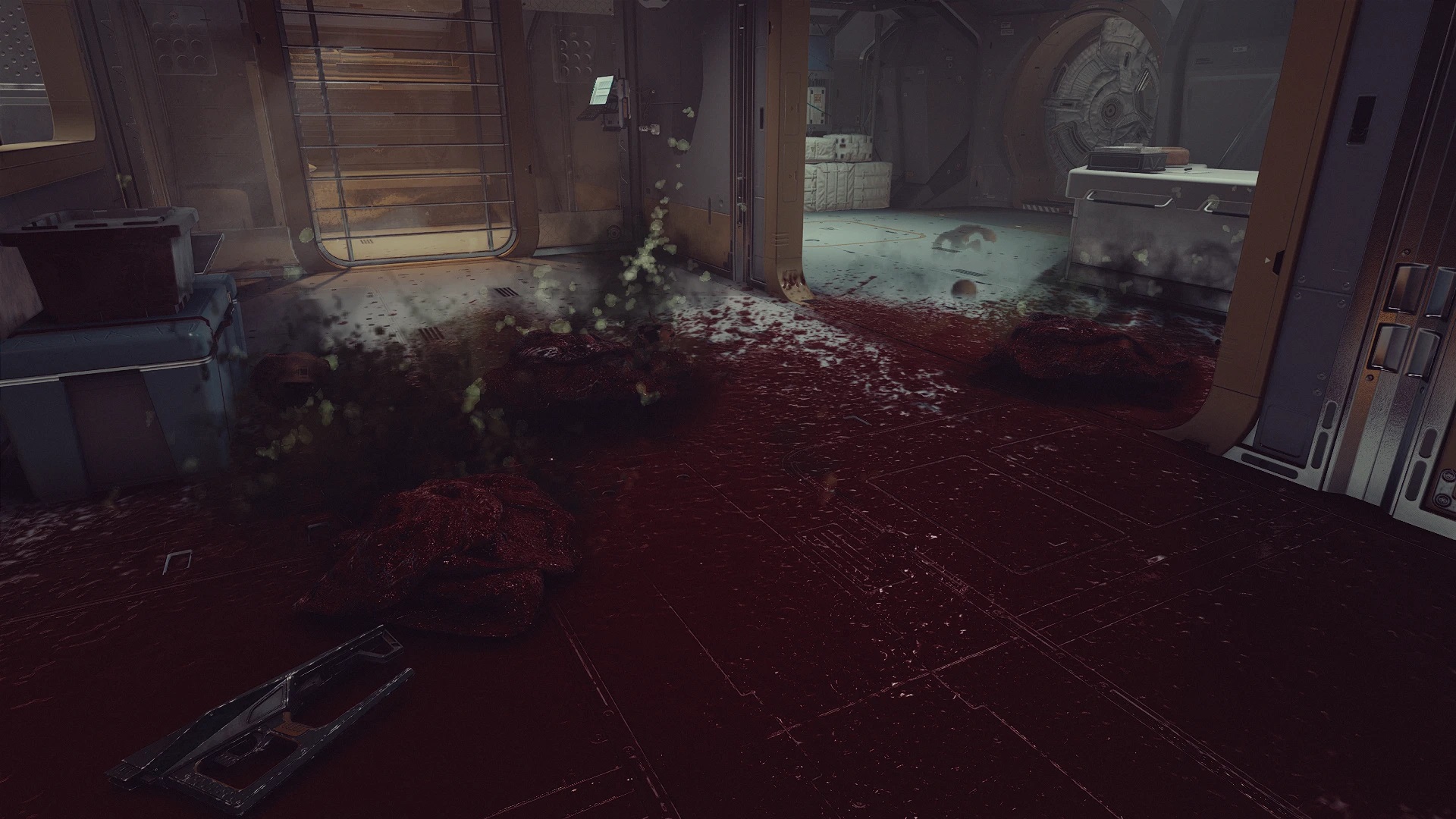 Seeing those screenshots makes me wish gaming didn't waste all given horse-power on hyper-realism. Imagine fluid dynamics on large blood/fluid pools that dripped and morphed to the environment. I remember in the x360 gen that a couple games attempted that.