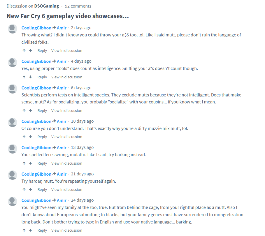 As for my responses to the guy named Amir, you really should go through his post history here. There is a reason he hides it on his profile page. Or at the very least you could go through his original comments that I was responding to. My post history is public so you should have no problem figuring them out.