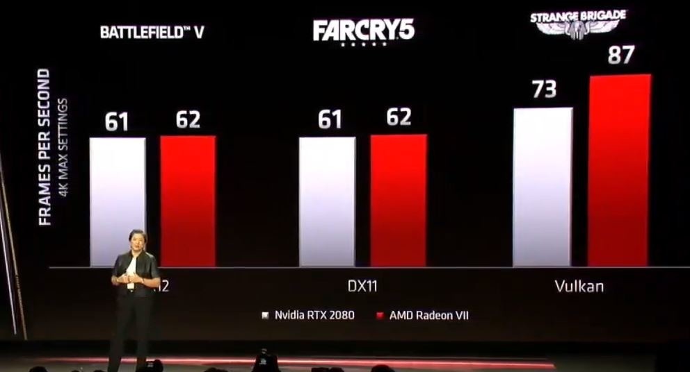 AMD has also revealed some initial benchmarks in which the AMD Radeon VII is 35% faster than Radeon RX Vega 64 in Battlefield 5, 25% faster in Fortnite and 42% faster in Strange Brigade.