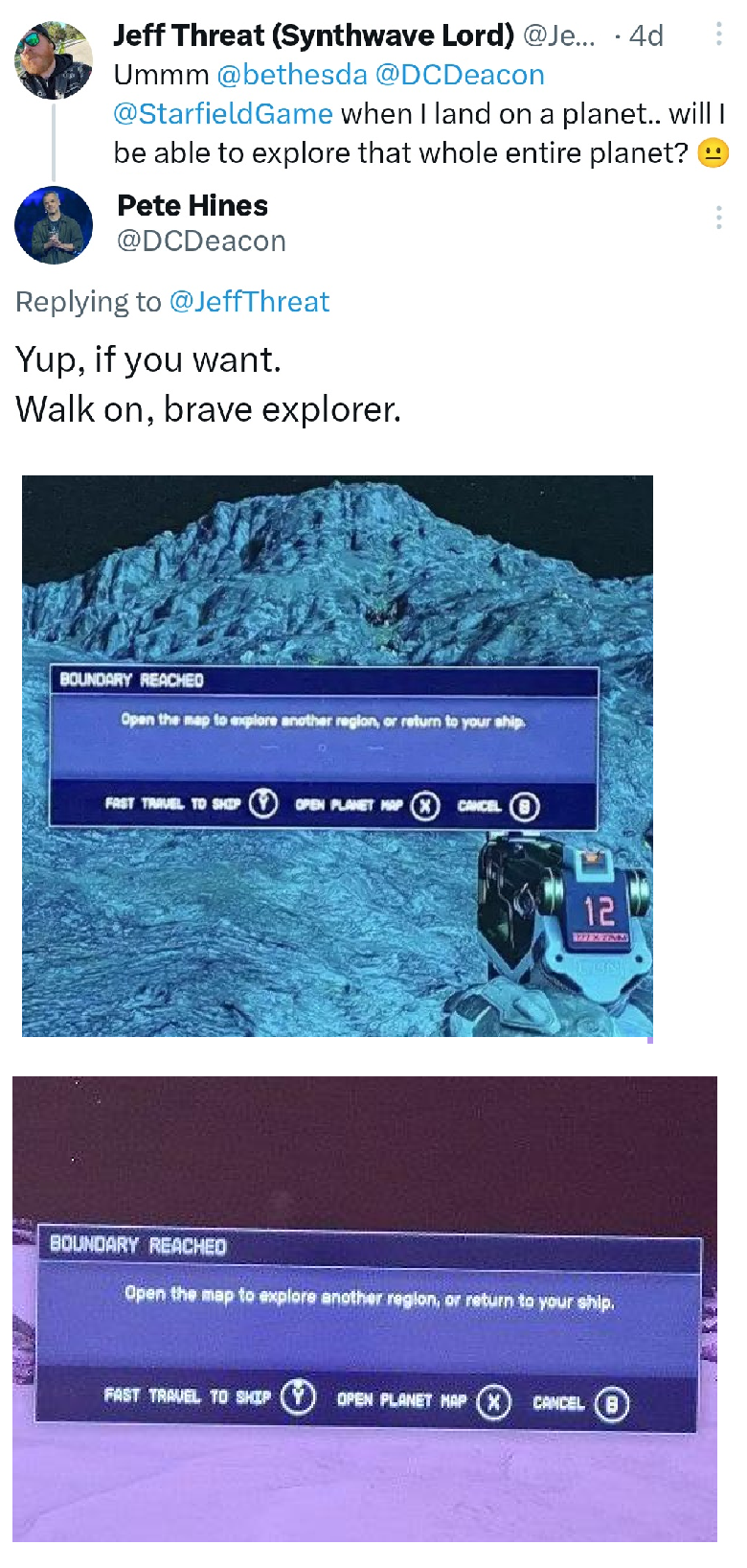 1. WTF? i am going blue laughing at the excuses some fans of Sony are using and the mental gymnastics they are going though to try run down starfield 😀