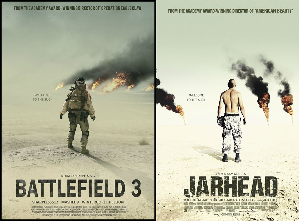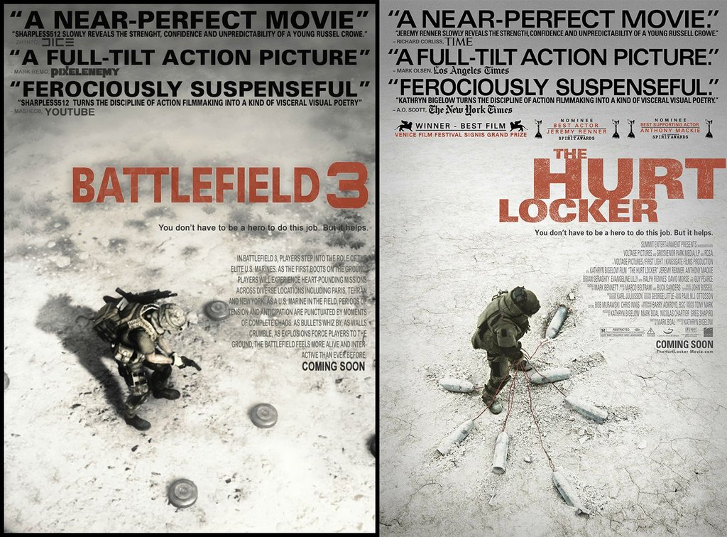 Now this is bloody amazing. Reddit’s user ‘sharpless512‘ shared some interesting wallpapers, showcasing war movies posters that have been recreated in Battlefield 3. The movies that have been recreated are: Jarhead, Black Hawk Down, Art of Valor, The Hurt Locker and Three Kings. A comparison between the real ones and those recreated in BF3 can be viewed below. Enjoy!