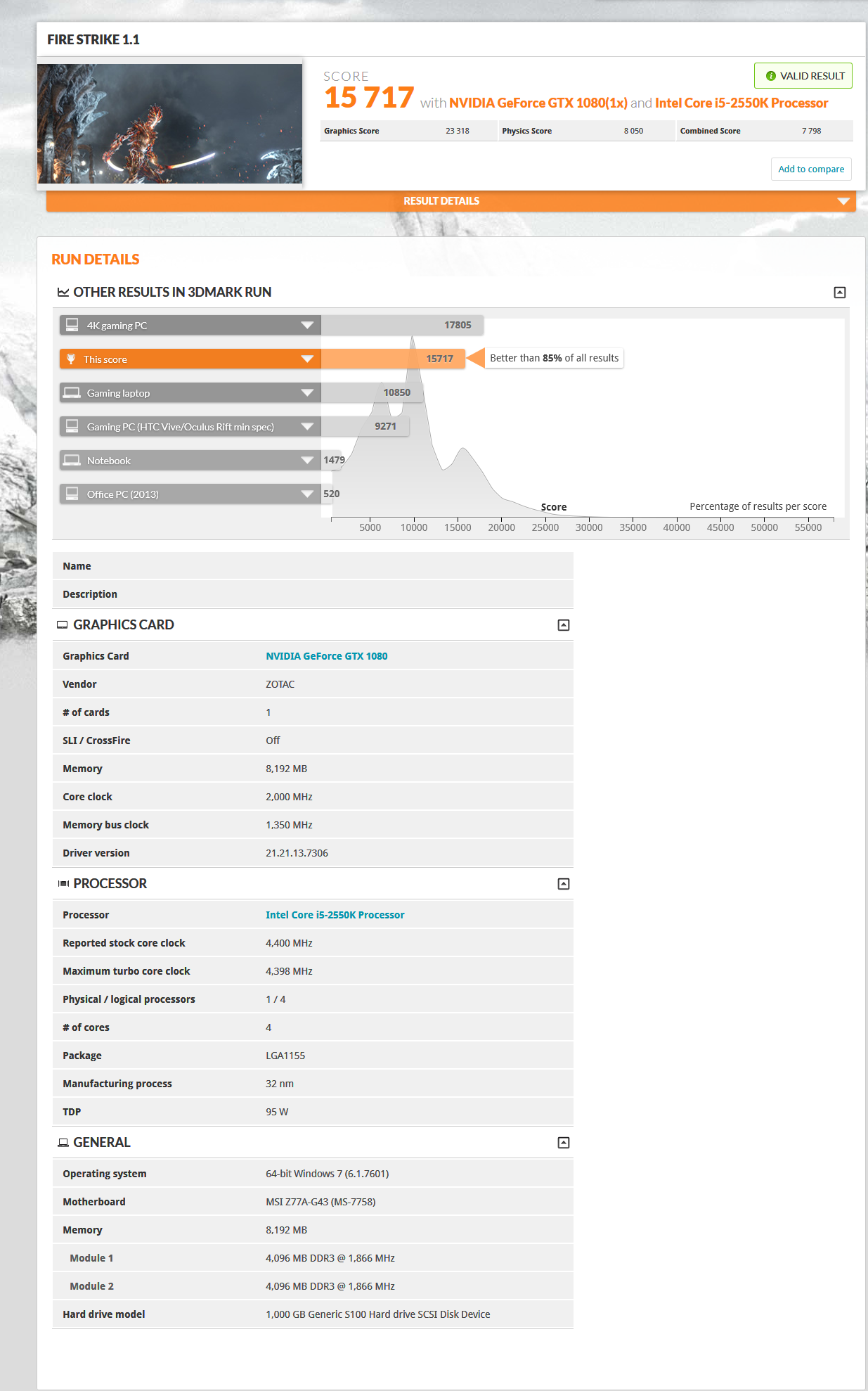 Thanks for the info, ill check the score now. 🙂 The sad thing is, i got the 2500.. without the K version. Back then, i didn’t do any kind of OC, and i was scared of trying it. Now i even OC my card, and it works well. I dont see any bottlenecks while gaining around 10-15 extra fps, but i hear if i go with 1080, i will see some for sure.