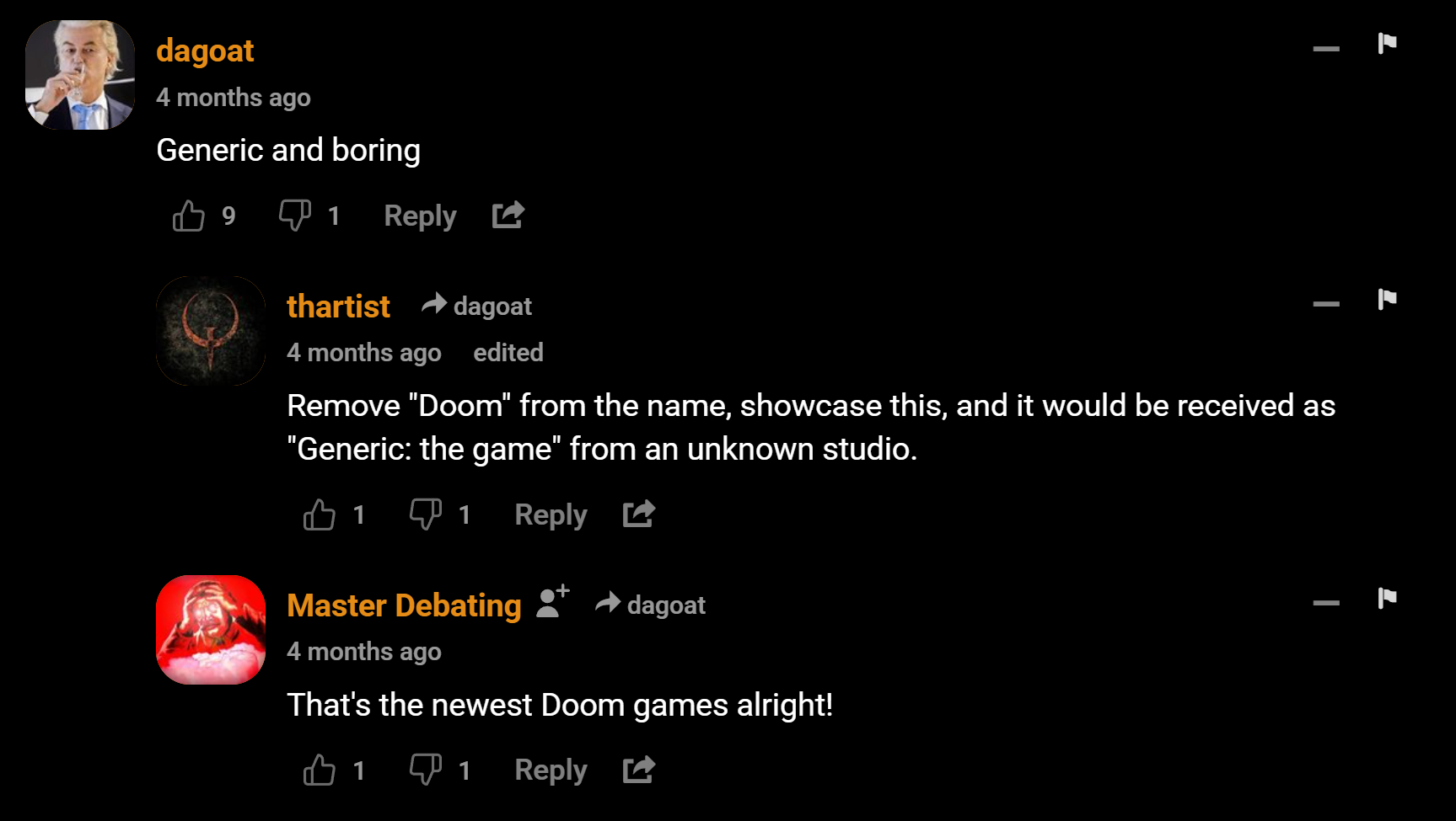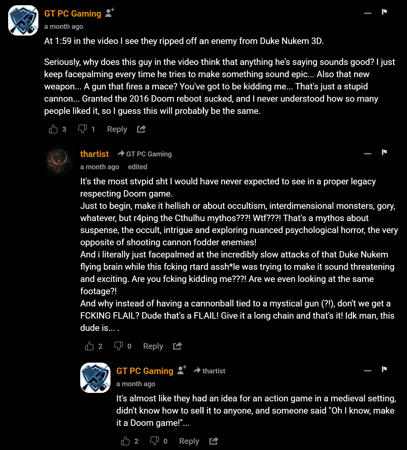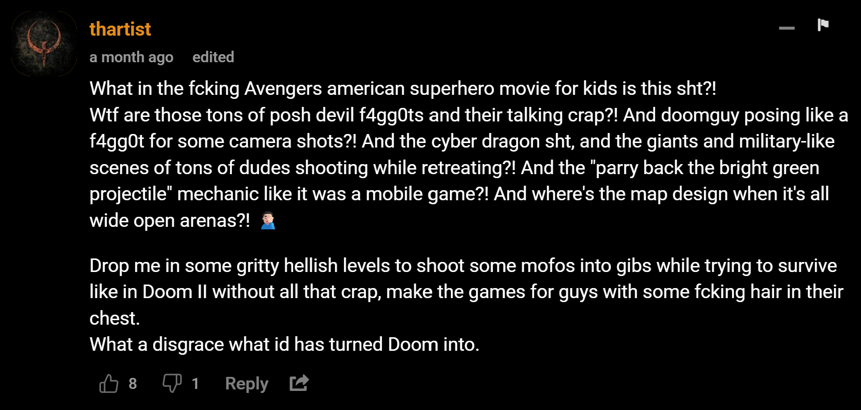 lol i need to work on my editing skills, but hows this? painkiller the dark ages lmao https://ibb.co/MVYJwds f*k this f*ke a*s doom game.
