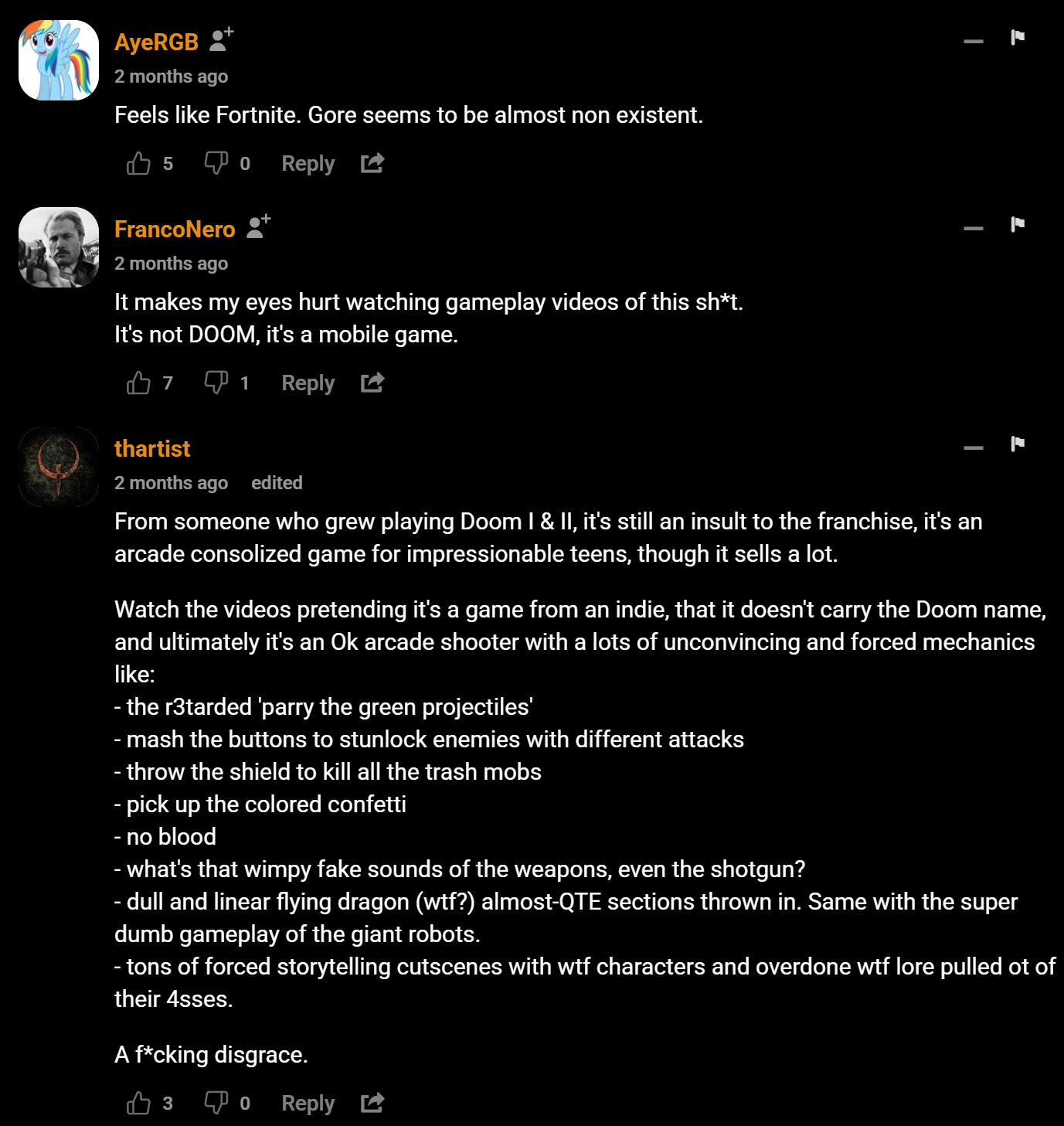 More and even stupider Doom Eternal??? Where the fff*ck are the real Doom 1 and 2 in this piece of sh*t??? Gaaah, gaming nowadays is pretty much hopeless…