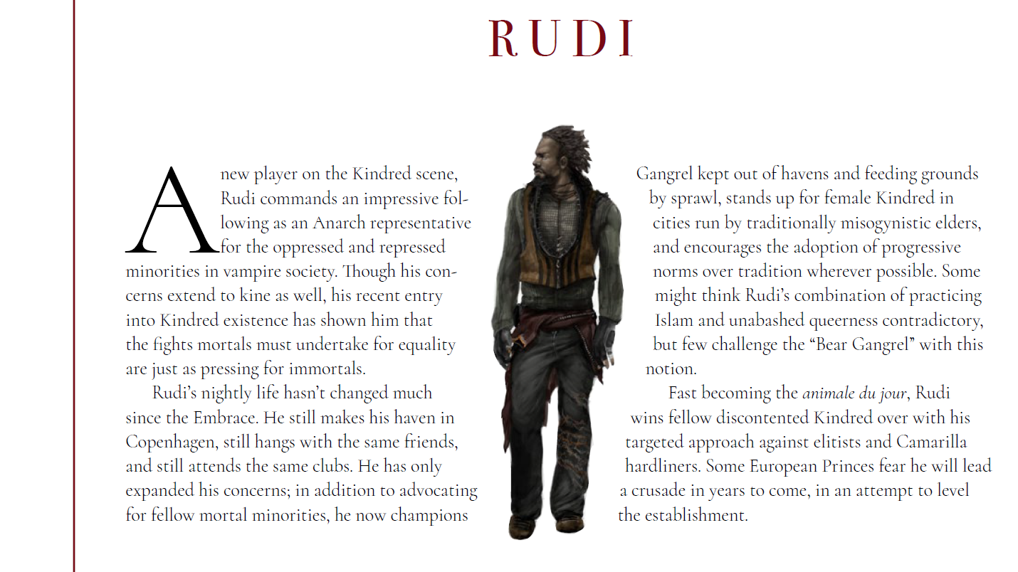 1. Doesnt matter, vampire the masquerade was cool because it was dark and serious, with the sjw infection of this franchise, gay muslim communist vampire called Rudi or Rudy, i dont care, might as well put glitter on everyone and call it twilight.