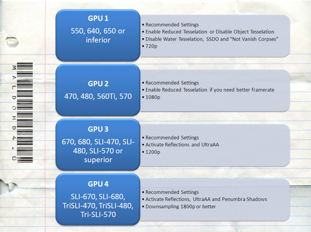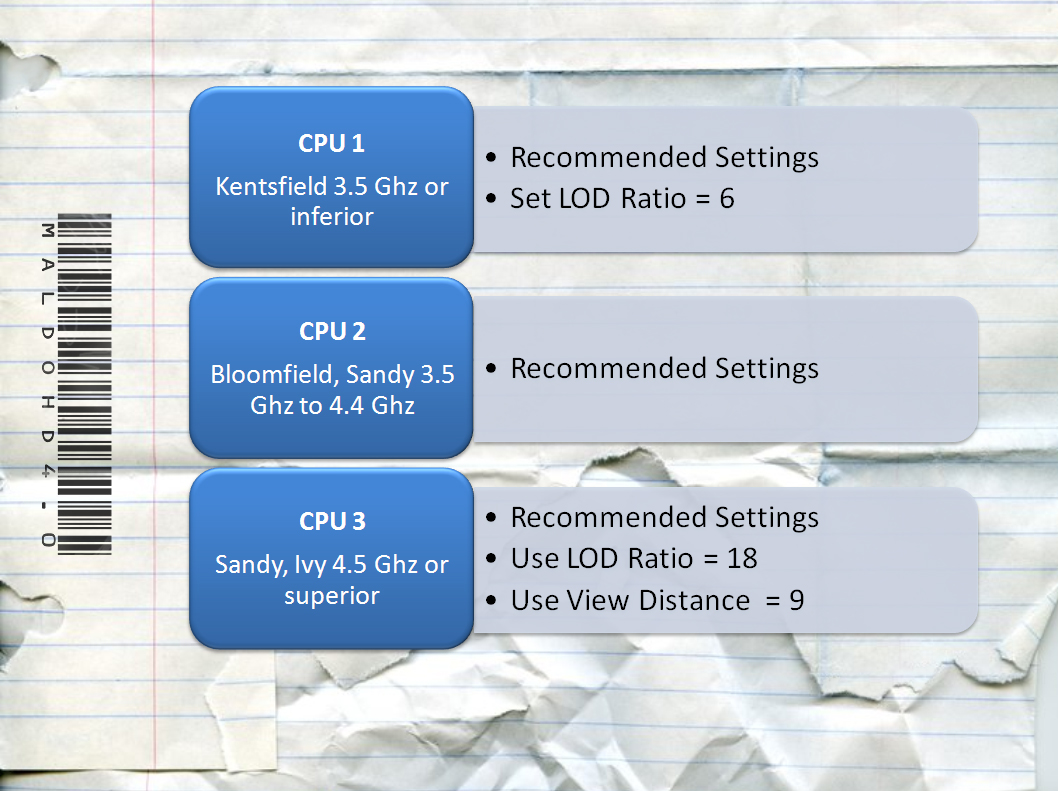 MaLDo has also released a general guide for those interested in tweaking his mod, as well as two images to showcase what CPU and GPU you will need for its settings. We strongly suggest you reading the Recommended Settings in the Config Tool, or the modders suggestions on his blog.