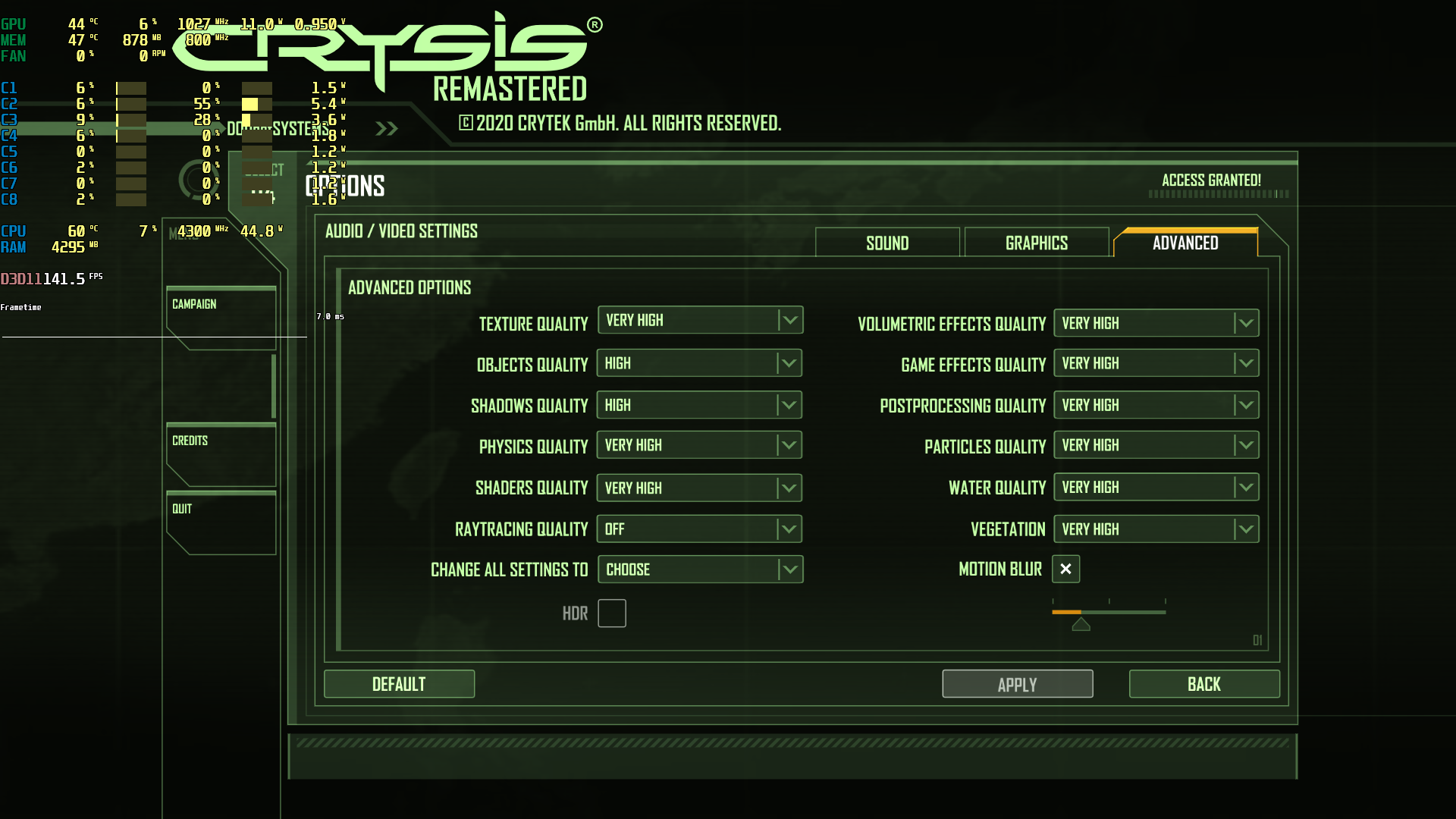 Don’t forget the single thread CPU issues as well. https://www.dsogaming.com/pc-performance-analyses/crysis-remastered-suffers-from-single-threaded-cpu-issues-just-like-the-original-game/