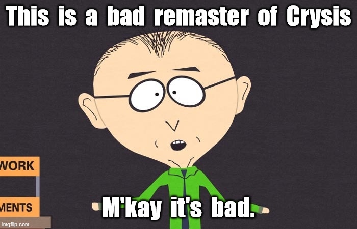 A company with the reputation like Crytek used to be, that made games focus mostly in the visual fidelity has to write a letter as an apology for showcasing screenshots of a remaster that makes the original look even way ahead of its time in that aspect. After 13 years they show that? is a joke.