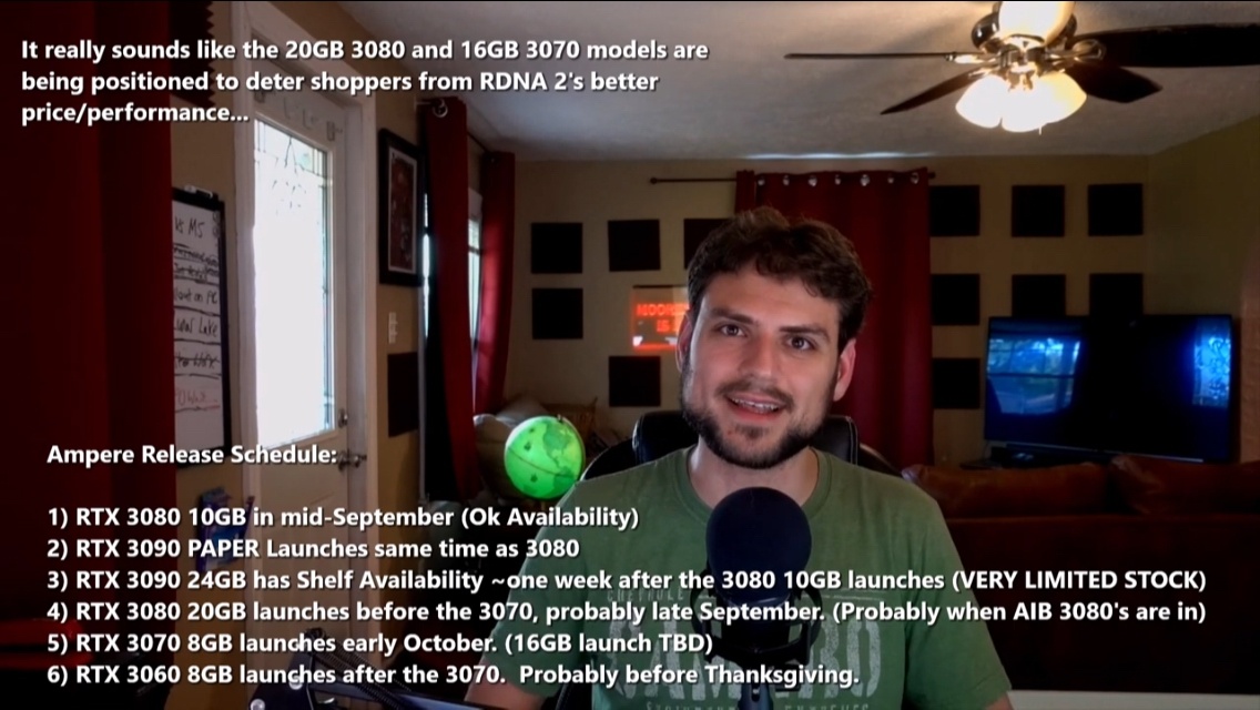 That’s the thing the rumor is that Nvidia will release Ampere cards with more VRAM to counter AMD Navi2 GPUs. Here’s the supposed release scheedule by Moore’s Law is Dead youtube channel. https://uploads.disquscdn.com/images/66ac3bd95080b9777e25b737daba50c3cba5272e472e4fcb345844f68d391d44.jpg