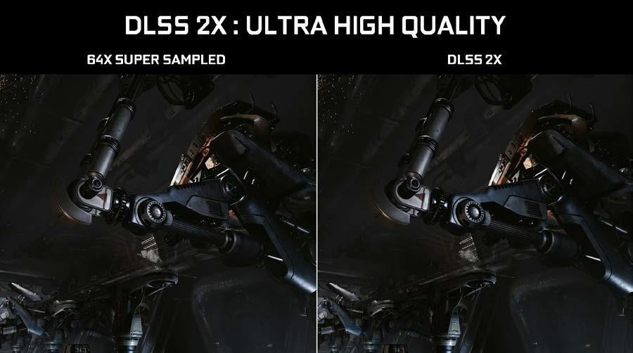 In this mode, DLSS input is actually rendered at the final target native resolution instead, and then it is combined by a larger neural network to produce an output image that approaches the quality level of a 64x super sample rendering, which would have been impossible to achieve in real time, using traditional methods.