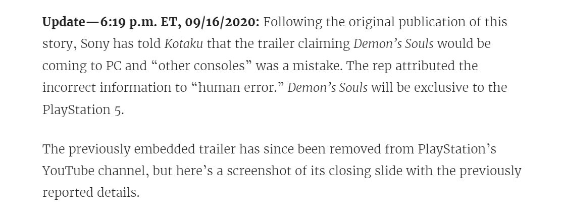 It’s coming out on PC. They had to pull the trailer obviously otherwise they’re going to lose a ton of PS5 sales if people know that they don’t need one to play DS remake, It wasn’t a human mistake. The human mistake was that the human was supposed to remove that from the trailer, so that people didn’t know, Not that they left it in the trailer and it wasn’t true,