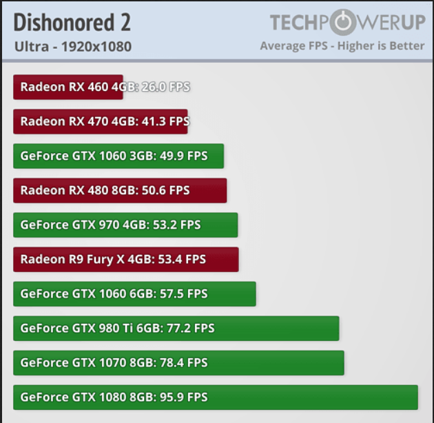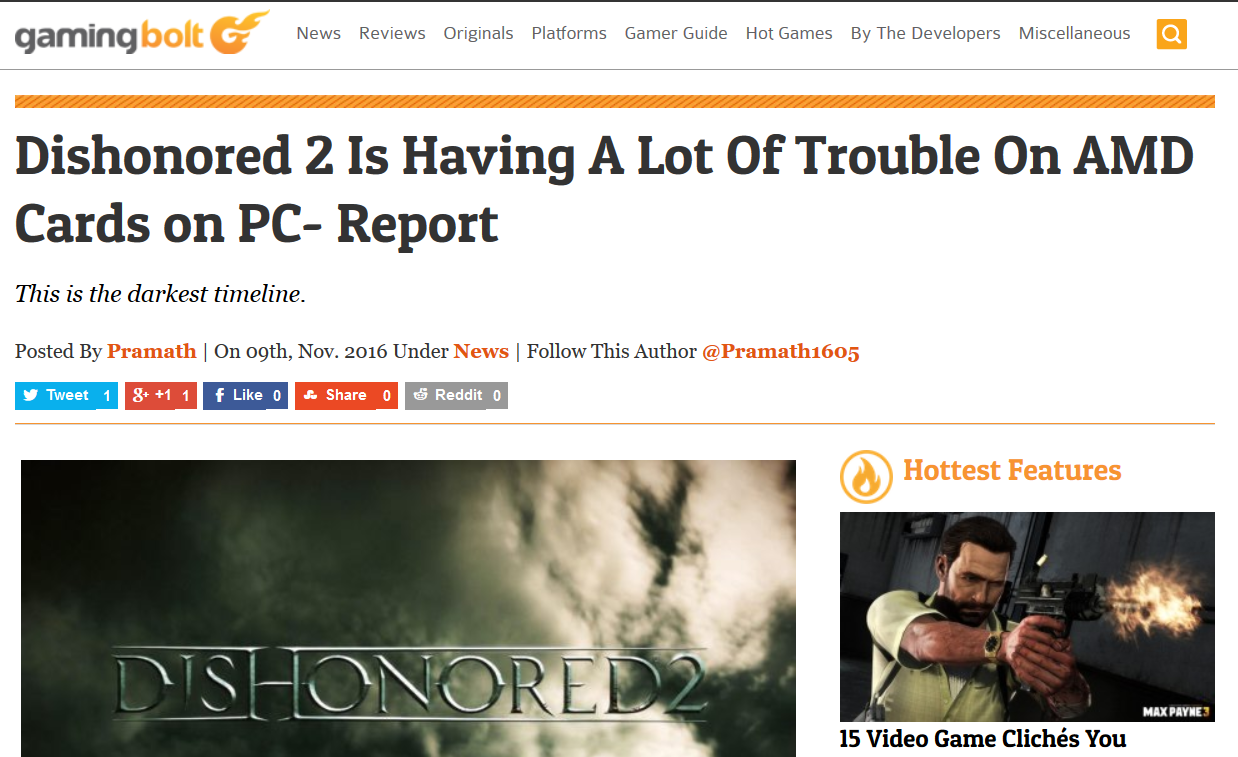 Dishonored 2 Is Having A Lot Of Trouble On AMD Cards Not Nvidia, see these images: