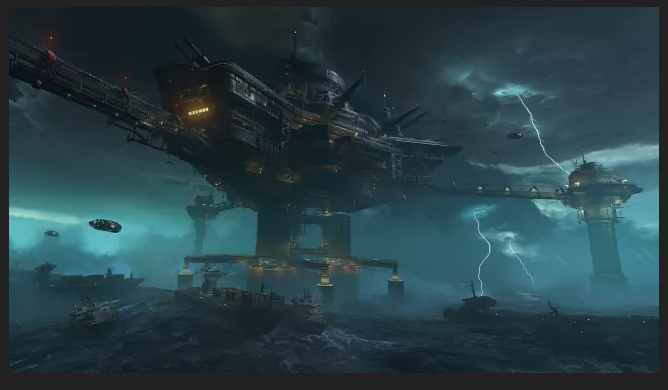 We have 2 images as shown below. The second setting looks like an offshore oil rig, almost certainly stuffed with demons, who knows ? Any thoughts on this leak ?