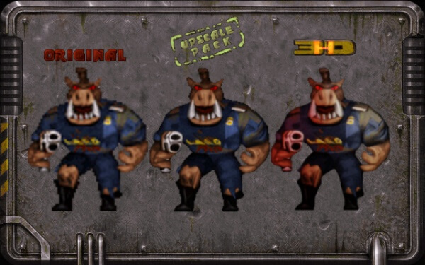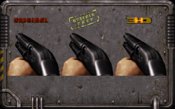 Duke Nukem 3HD will also include two variants. The first one will have the original upscaled textures from phredreeke. The second version will add normal, specular and glow maps to the original 8-bit sprites and textures.