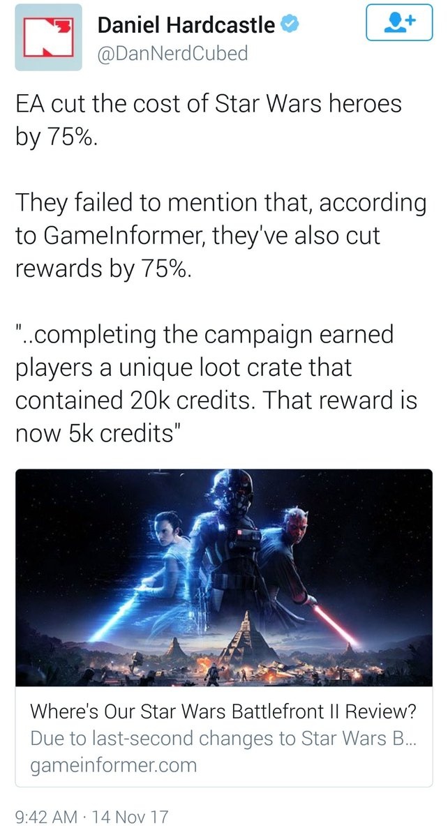 “There’s been a lot of discussion around the amount of in-game credits (and time) it takes to unlock some of our heroes, especially Luke Skywalker and Darth Vader. Unlocking a hero is a great accomplishment in the game, something we want players to have fun earning. We used data from the beta to help set those levels, but it’s clear that more changes were needed. “