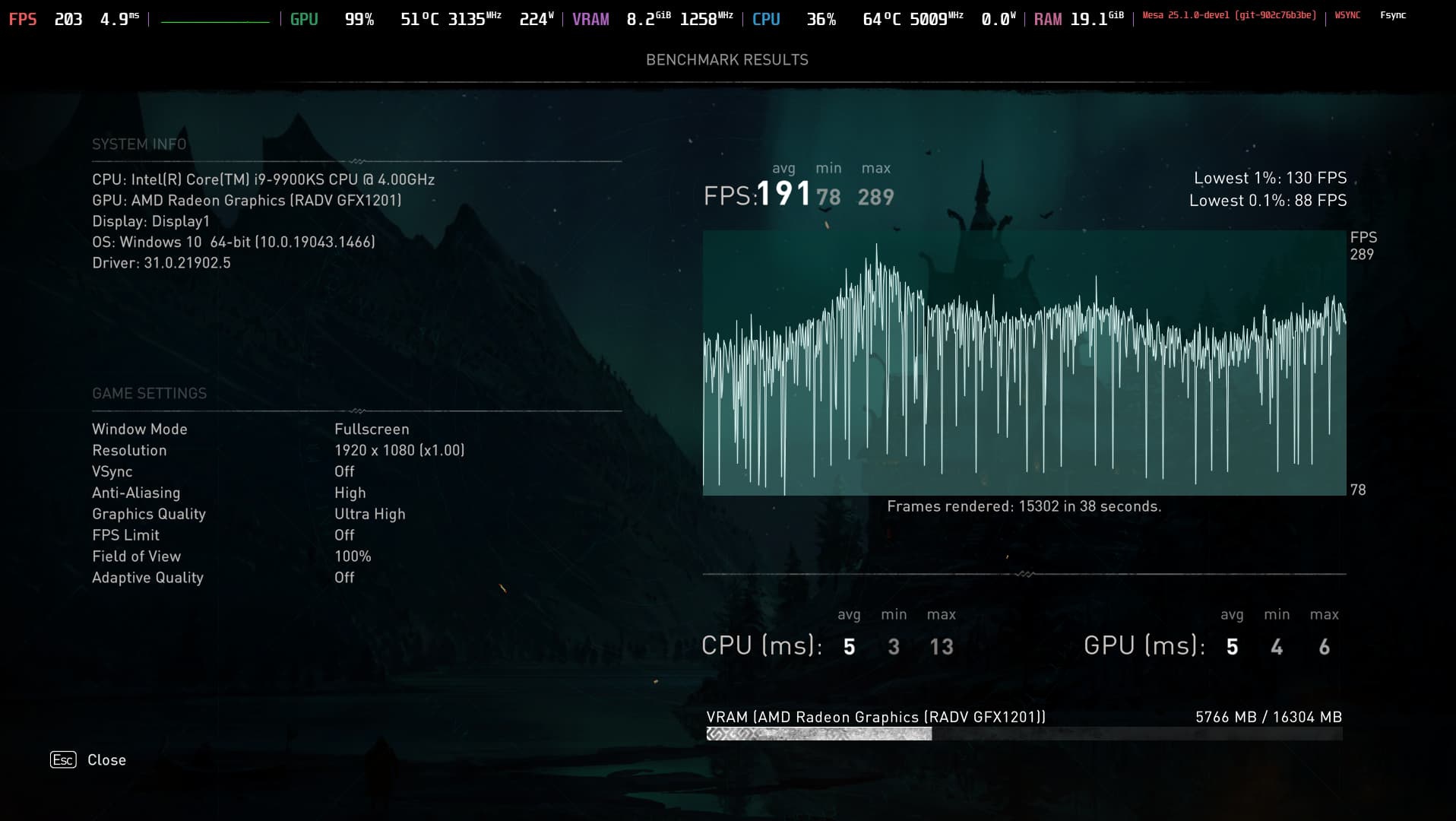 For example, here are the benchmark results of AC Valhalla on Windows vs. Linux, which natively runs on DX12: