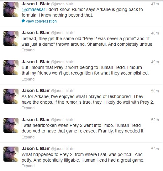NeoGAF’s member ‘Messofanego’ has managed to capture all of Blair’s tweets, and you can view them below.