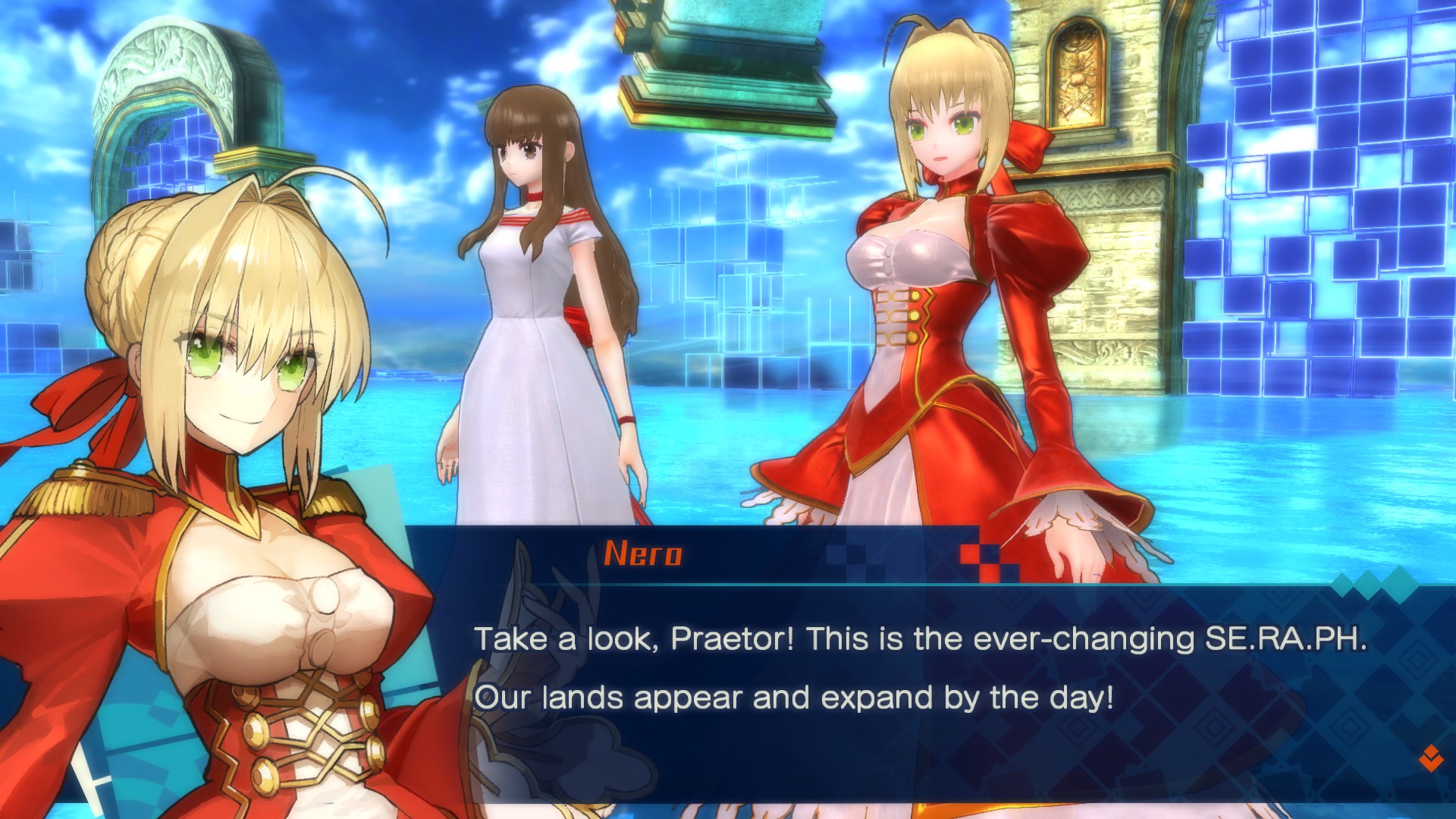 “In a future watched over by the all-powerful lunar super computer, “Moon Cell Automaton,” these champions now battle for dominance over this digital realm, known as “SE.RA.PH.” This story takes place after the events described in Fate/EXTRA, and depicts the world as it appears following that previous Holy Grail War.”