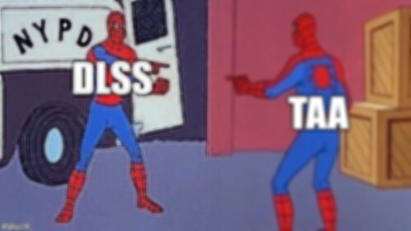 The TAA implementation is butchered, looks like blurred trash to the oblivious NVIDIA fangay. Add a bunch of sharpening bullschit and you’ve got your DLSS….. artifact free!