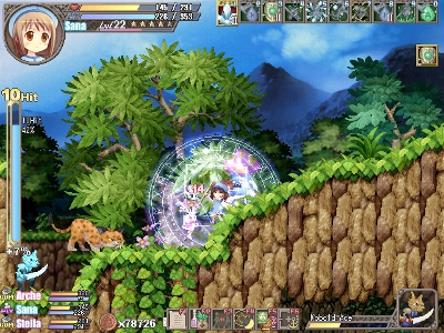 According to the developers, the game’s combat system is different, depending on who you control. Arche, being a swords-girl, controls in a fashion similar to a character from a brawler or fighting game, with many special moves tied to button combos. Sana and Stella, her companions, rely more on their varied selection of spells to see them through a fight – spells that rain ice down on enemies, make mirror images of friends, or set the ground ablaze.
