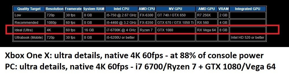 “You need a faster CPU if you want have stable 60fps like on Xbox X.”