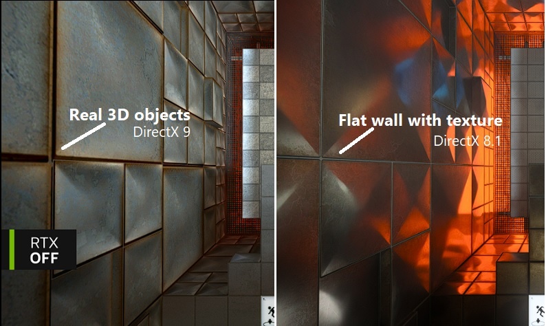 The game has full PBR textures. Complaining the walls are flat in this version is some kind of special inbred BS. I would guess the more advanced version was rejected due to the use of shader code, actual program code, being used to simulate geometry. Using the same inbred BS I could argue that games that use shader code are producing fake frames as it’s not real geometry… Face meet palm…