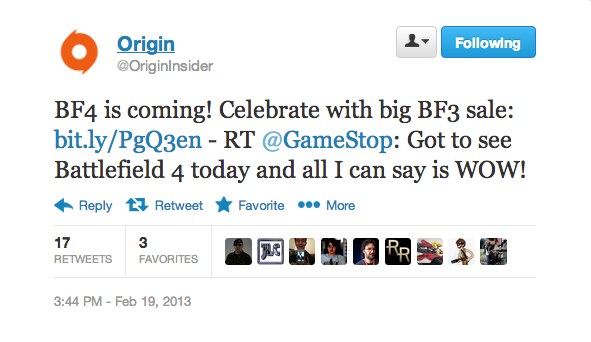 At first, we all thought that this was a trolling message from Gamestop’s CEO. But then again, could the CEO of Gamestop be trolling on Twitter. Nyah, of course not. Still, we were a bit suspicious about this whole thing. And then all hell has broken loose. Origin’s official Twitter confirmed that Battlefield 4 is coming and that it celebrates it with a big BF3 sale. Moreover, the official Battlefield account retweeted Gamestop’s CEO tweet, confirming that this is the real deal.