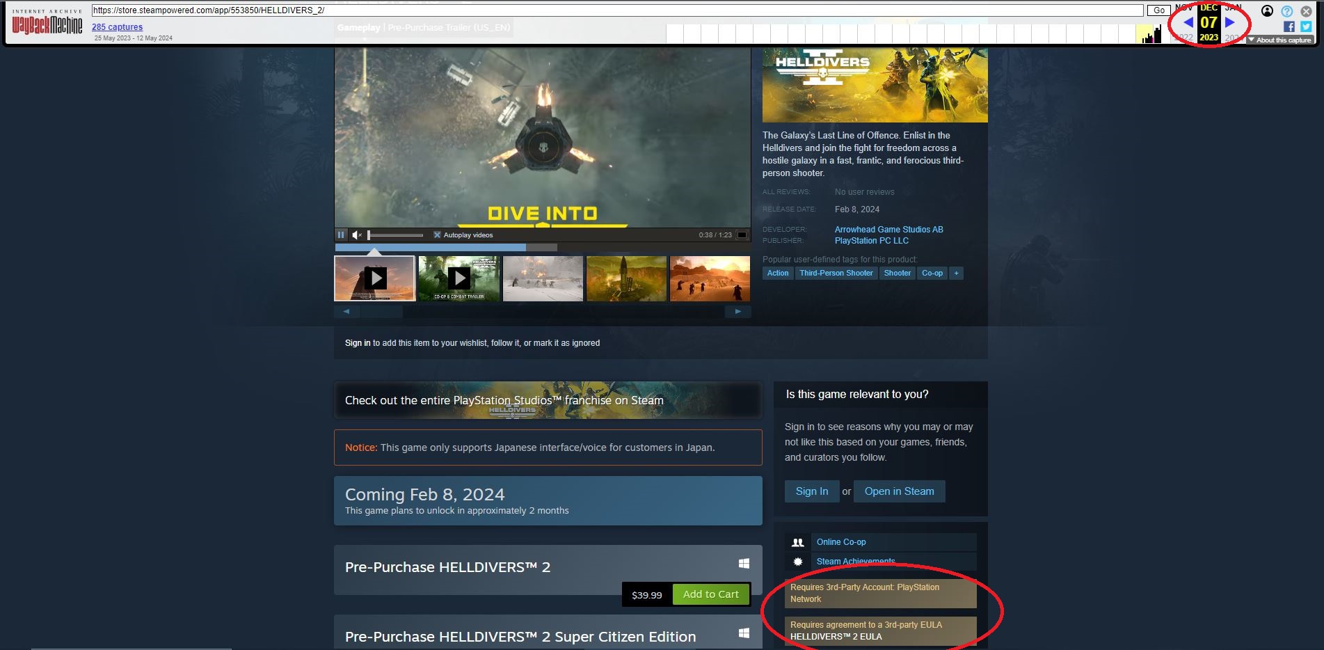 and you are incorrect….Helldivers 2 didn’t say it was required….THE CEO of the Devs said “it was always intended because that’s what SONY wants”….but it wasn’t listed on the steam page when people paid for it. Then they wanted to add it….
