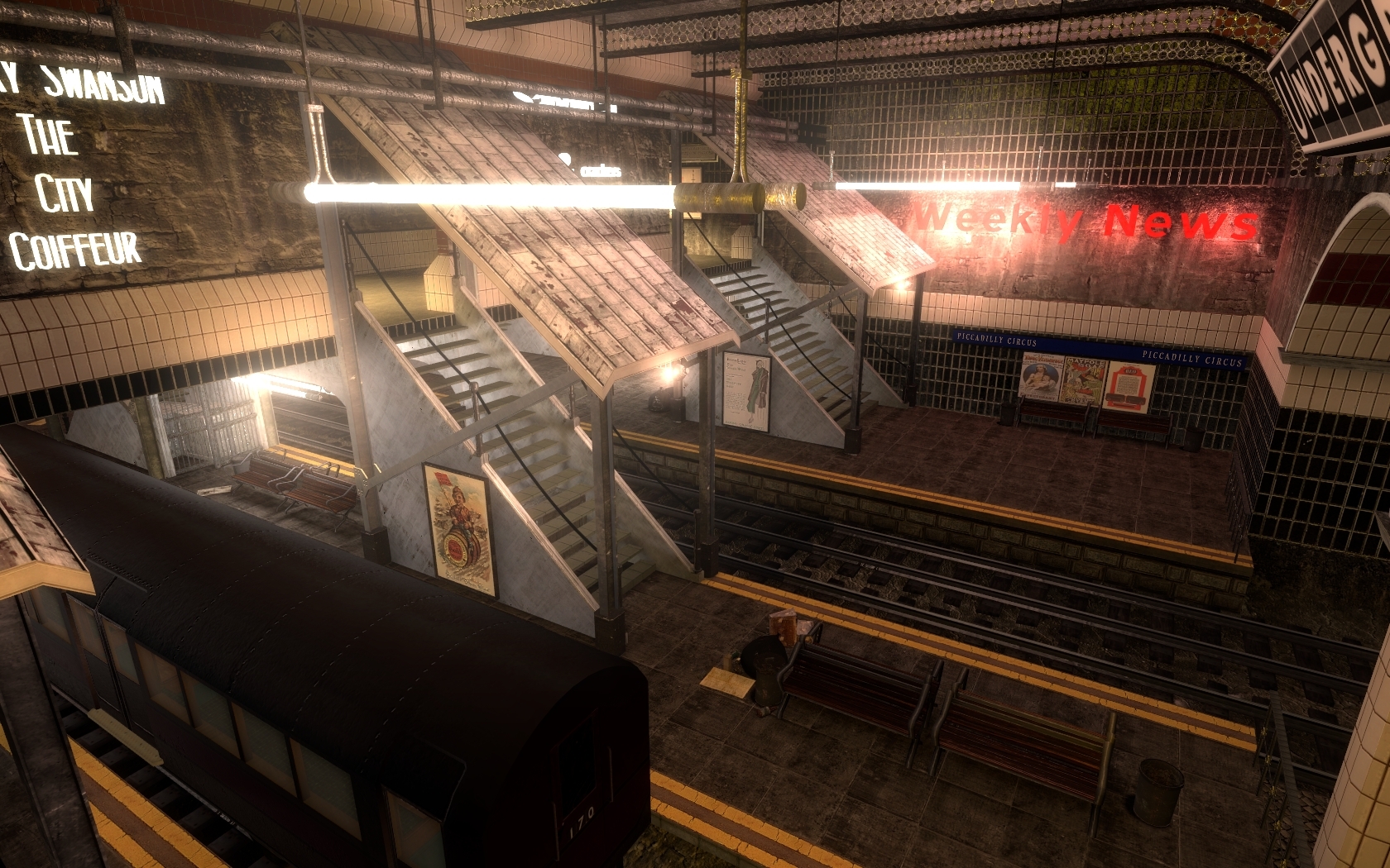 Northcape Studios released today some new screenshots for their upcoming Half Life 2 mod, Zeitgeist. Zeitgeist is a single player modification, playing in the futuristic 1930s of a fictional time line. In addition, the company released the game’s first video footage which shows the player leaving the escalators at Piccadilly Underground Station, catching a train and being carried into another station.
