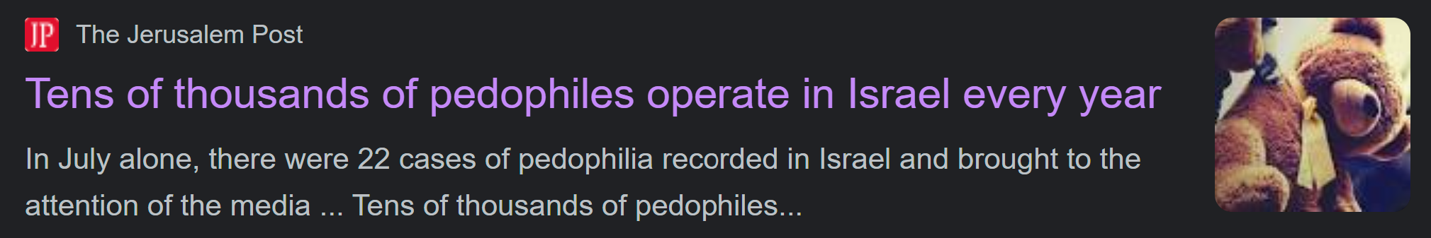 Serious question: When was the last time you’ve heard of a Muslim raping a child VS when was the last time you’ve heard of a Jew raping a child?