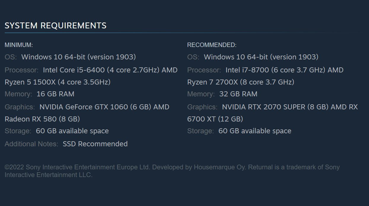 The devs recommend using an Intel Core i7-12700K or AMD Ryzen 7 7700 with 32GB of RAM and an NVIDIA GeForce RTX 3080Ti or AMD Radeon RX 7700XT. With these PC specs, you can expect to run the game at 1440p/High with 60FPS.