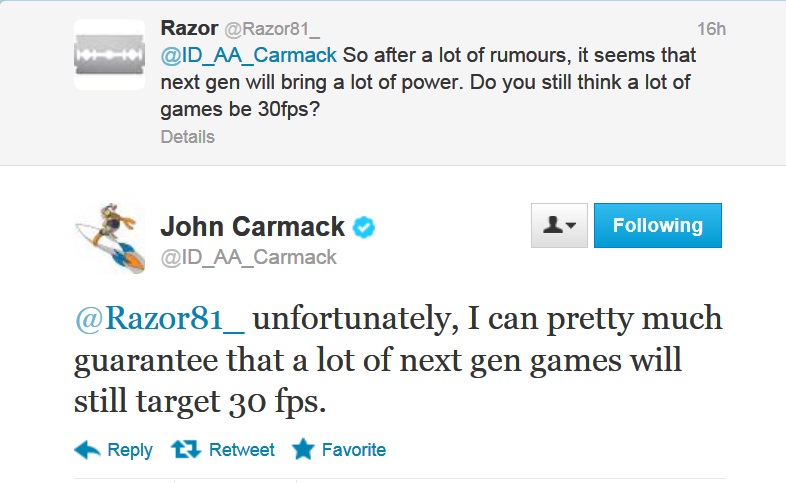 Back in May, we informed you about John Carmack’s beliefs regarding next-generation consoles. As Carmack said back then, a lot of games that will be released on next-generation consoles will still run at 30fps and not at 60s. Today, Carmack reconfirmed those beliefs, despite the recent rumors about the hardware that will power both X720 and PS4.