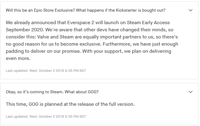 Note this quotation from the FAQ section whereby despite uttering many words they fail to outright state categorically that the game won’t become an Epic Games Store timed-exclusive. The only thing they’re seemingly somewhat vaguely “promising” is to release the game in alpha and/or beta form on Steam Early Access.